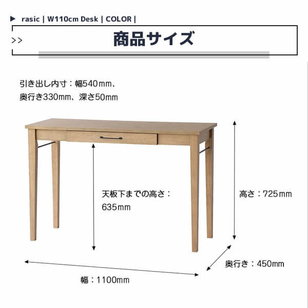 引き出し付きデスク ナチュラル 110cm幅 引き出し1杯付き 机 オフィスデスク 幅110cm 奥行45cm 高さ72.5cm 作業台 作業デスク ワークデスク おすすめ おしゃれ 北欧 テレワーク リモートワーク 在宅ワーク 机単品 作業机 書斎机 収納付きデスク 勉強机 木製デスク 送料無料