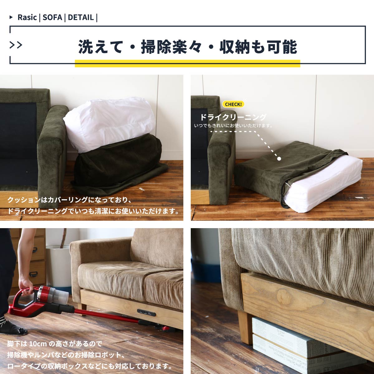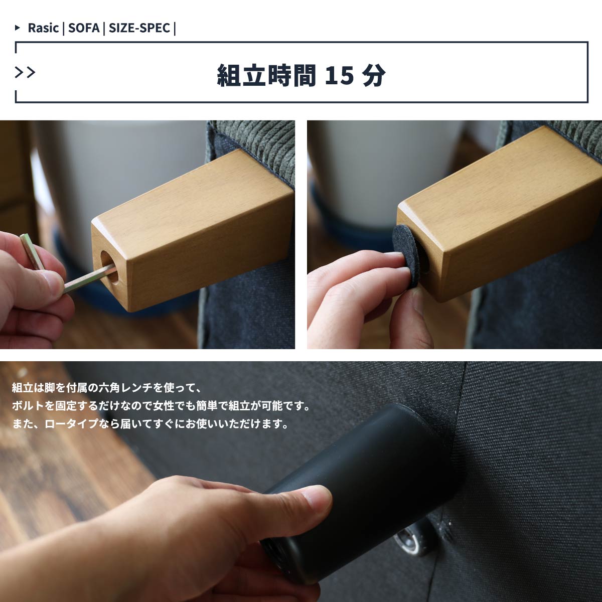 天然木の木脚は取り外し可能なので、ハイタイプ、ロータイプをお好みで使用可能な2人掛けソファです。