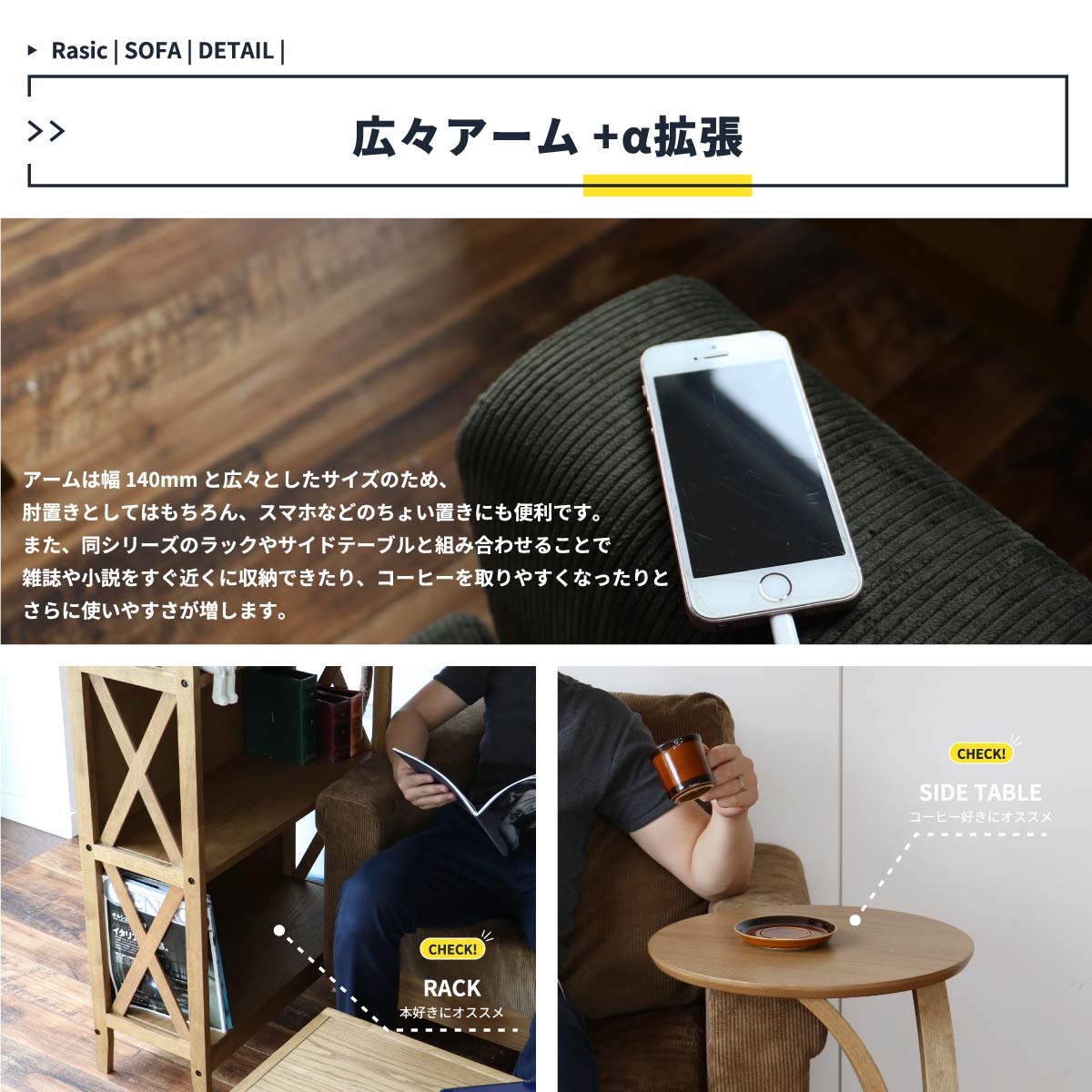 ちょっとした作業をする際にも便利なコンセント付きで、在宅ワークなどをする際にもおすすめの二人用ソファです。