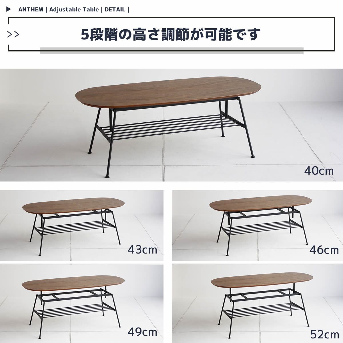 センターテーブル リビングテーブル ローテーブル 高さ調節可能 高さ5段階調整 おすすめ おしゃれ 北欧 天板高さ調整可能 ブラウン 茶色 机 リビング机 収納棚付き 収納棚付きテーブル