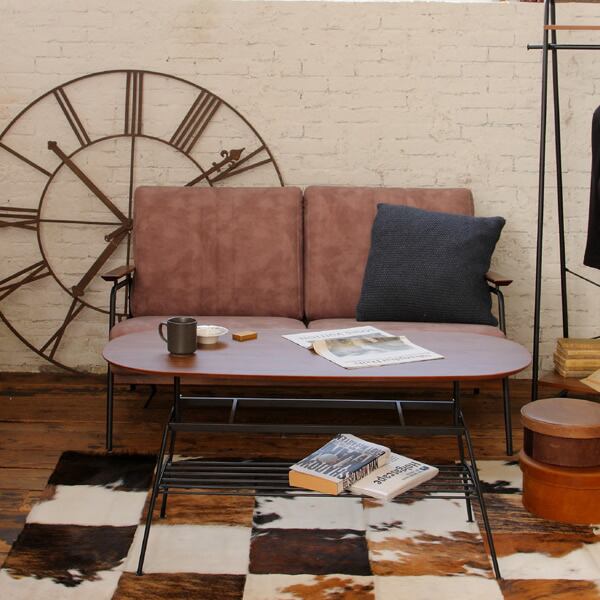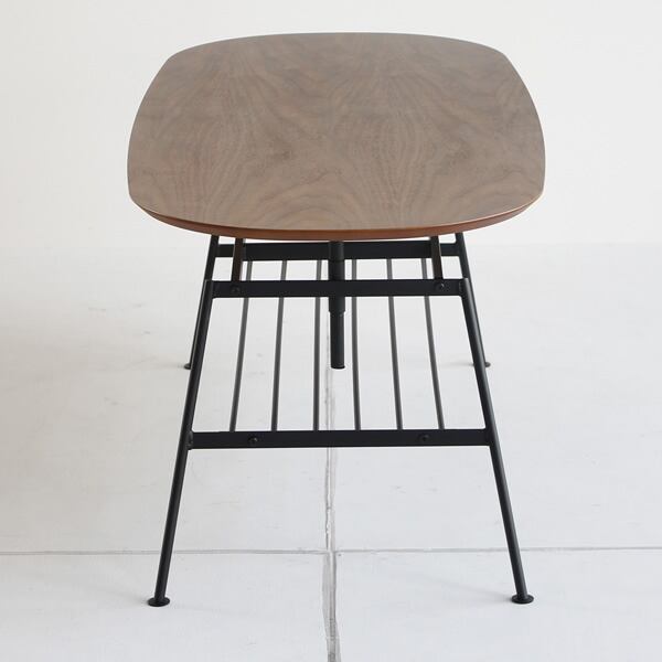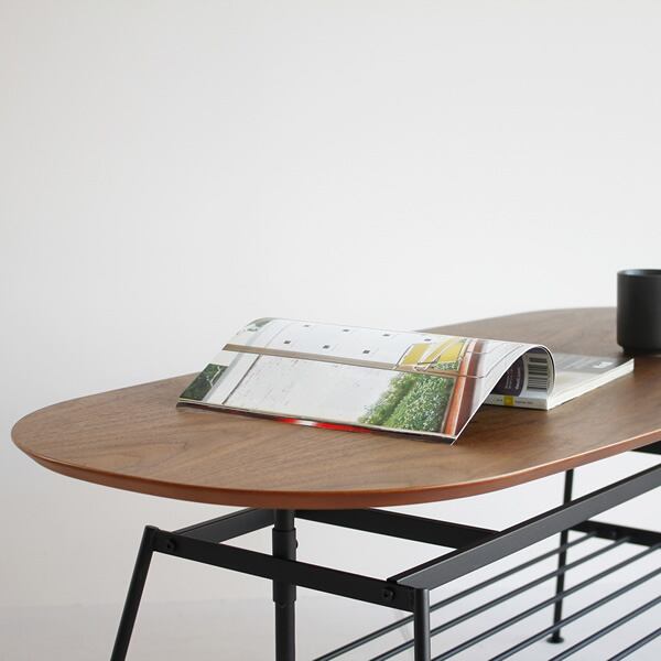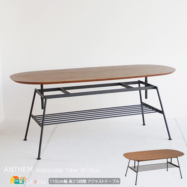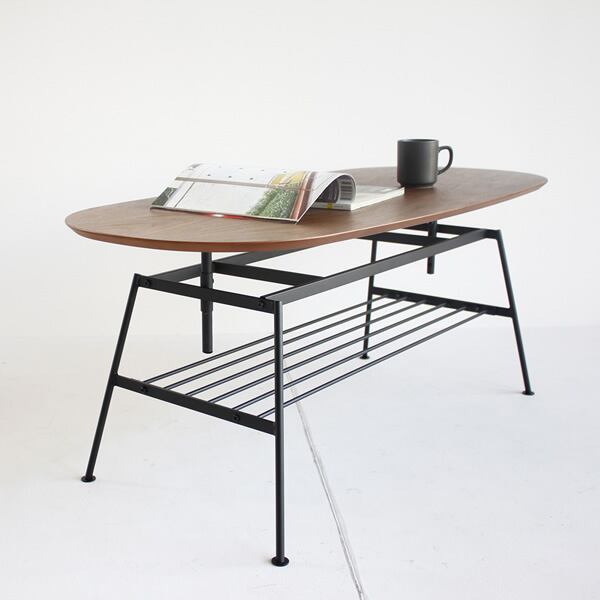 木とスチールがうまく融合した、高さが5段階調整可能な110cm幅の高さ可動式のセンターテーブルです。