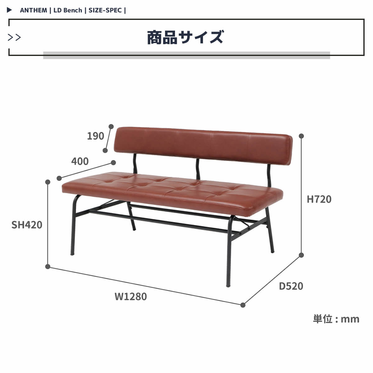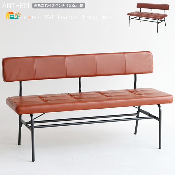 ダイニングベンチ 1台 単品 ブラウン 茶色 128cm幅 2人掛けベンチ 合皮ベンチ 合成皮革 食卓ベンチ カフェベンチ 幅128cm 奥行52cm 高さ72cm 座面高42cm おすすめ おしゃれ 北欧 合皮 合成皮革ベンチ 背もたれ付きベンチ ダイニング用ベンチ スチールフレーム 送料無料