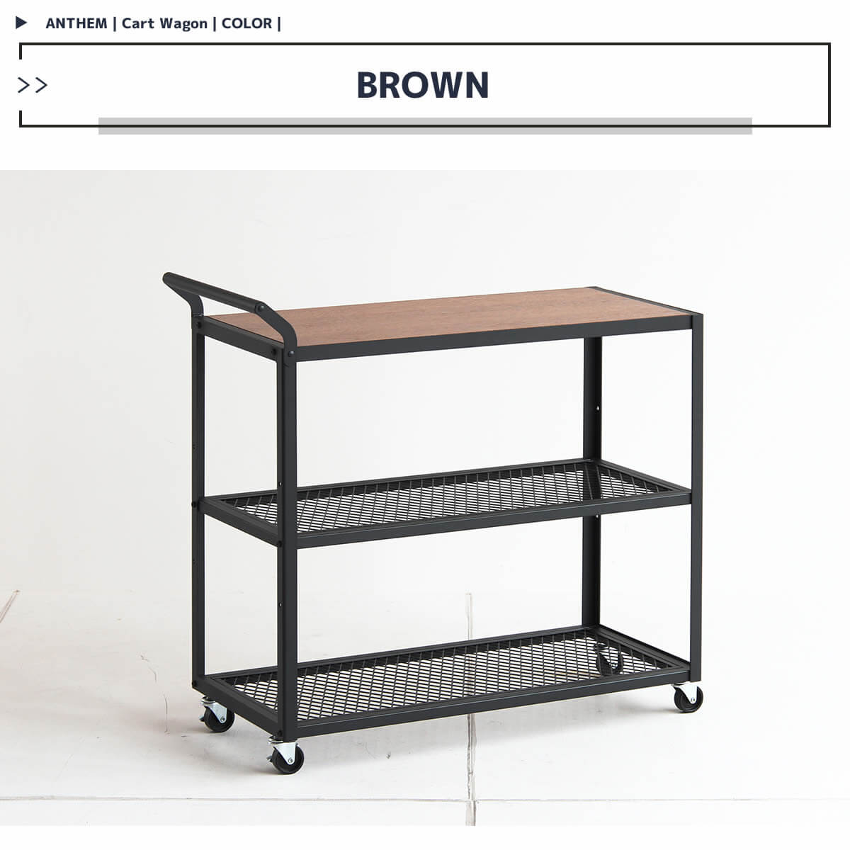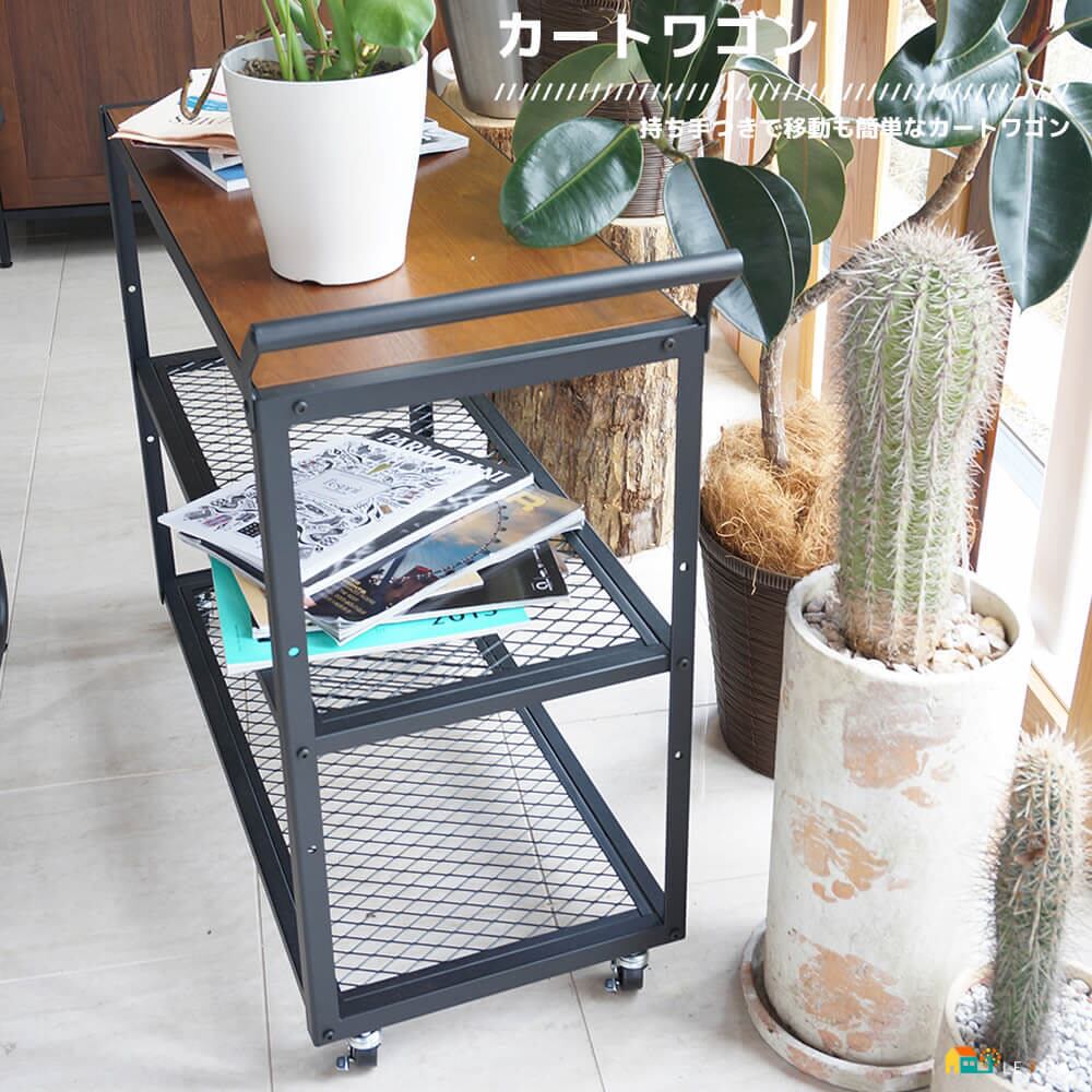 カートワゴン キャスター付きラック キッチンワゴン キャスター付きワゴン 取っ手付きワゴン 持ち手つきワゴン おすすめ おしゃれ 北欧 ブラウン 茶色 幅85.5cm スチール製 木製 キャスター付き キッチン収納