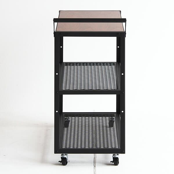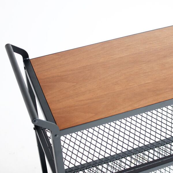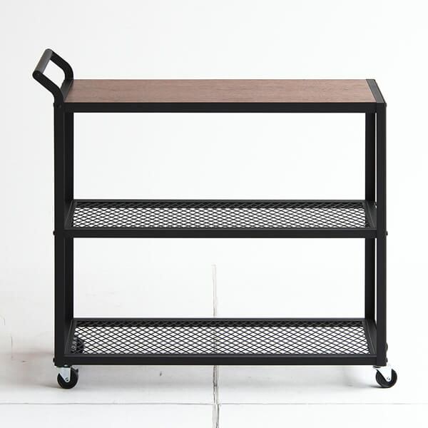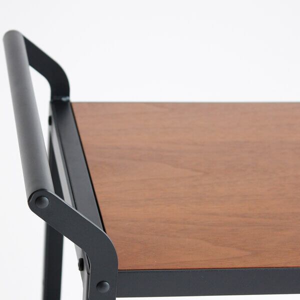 ウォールナットとスチールが特徴的なキャスター付きカートワゴンです。