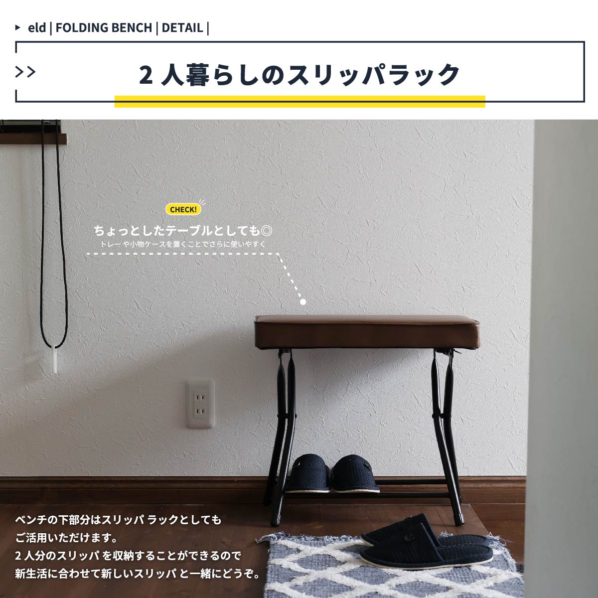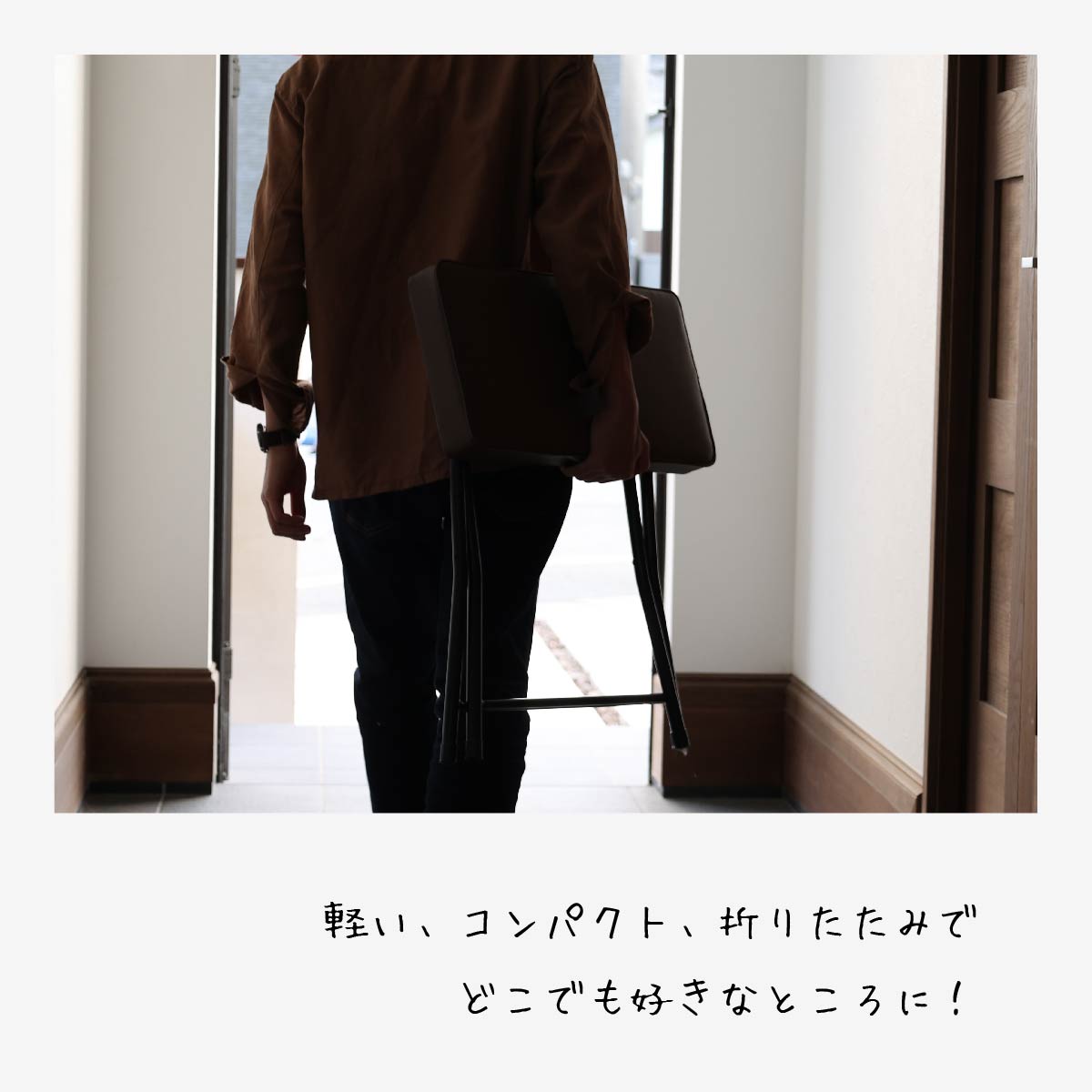 抜け感のあるお洒落な折りたたみ式の玄関ベンチです。