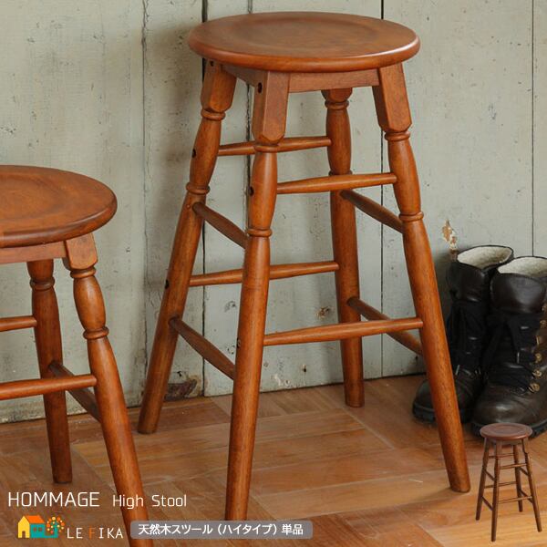脚のデザインがポイントの天然木を使用したハイタイプのスツールです。