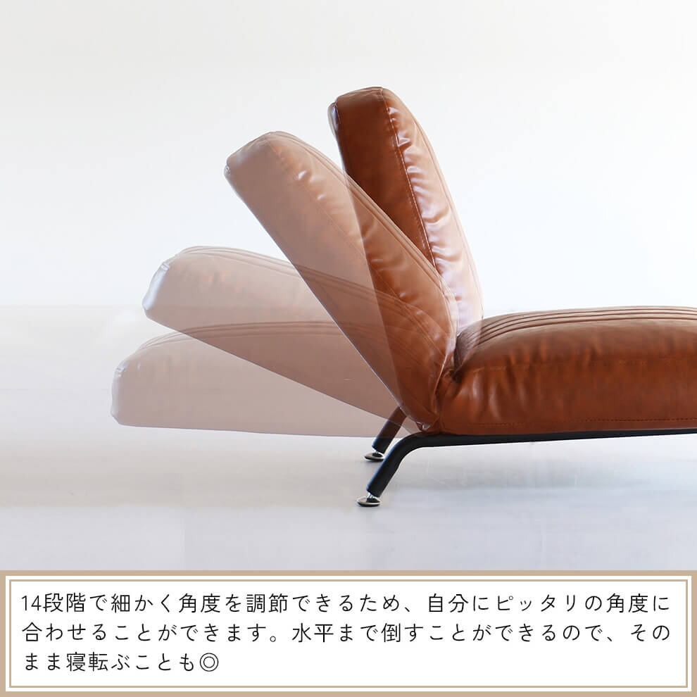 背もたれは細かく14段階で角度調整できるので、自分にピッタリの角度に合わせやすく、水平迄倒すこともできるので、そのまま寝転ぶことも可能な一人用ソファです。
