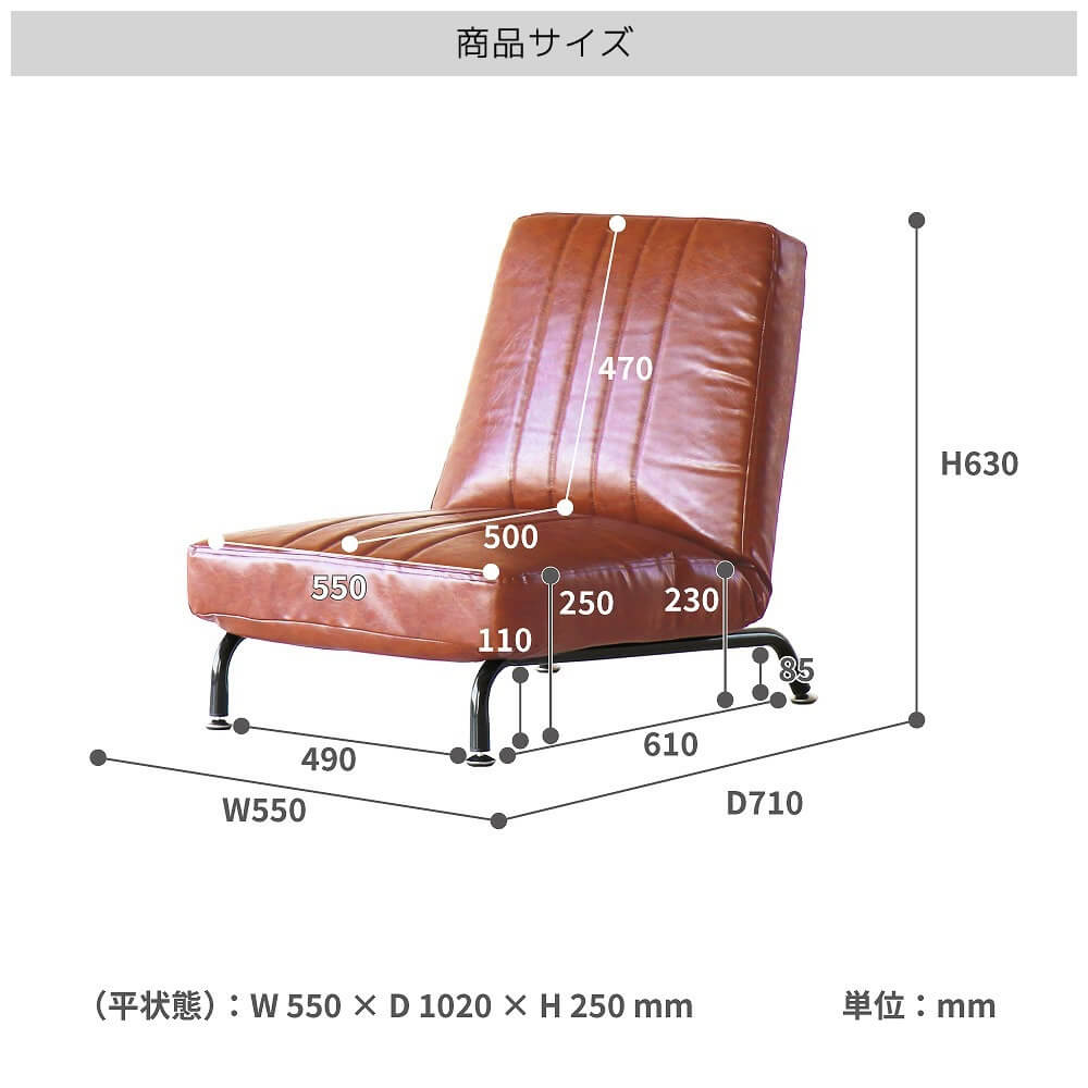 ■商品サイズ(約):幅55cm、奥行102cm〜奥行71cm、高さ25cm〜高さ63cm、座面高22cm