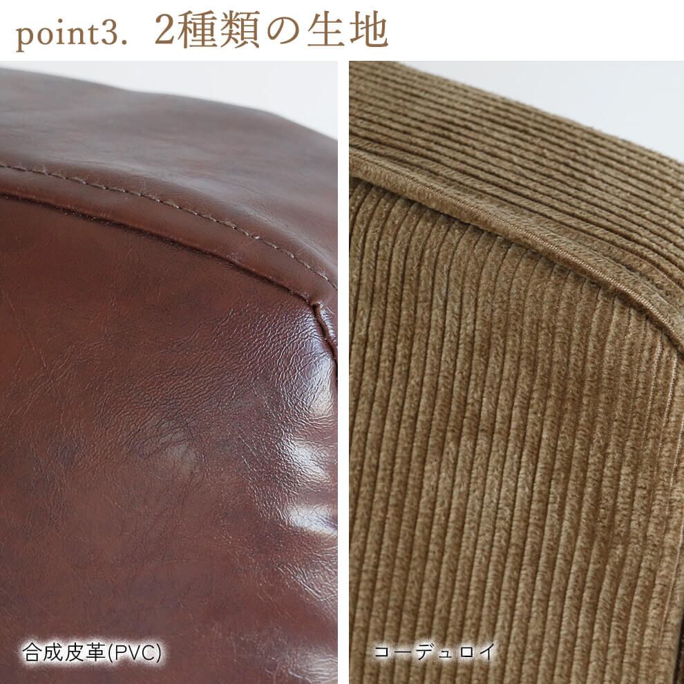 生地は合成皮革(PVC)と、コーデュロイの生地の2種類展開となります。