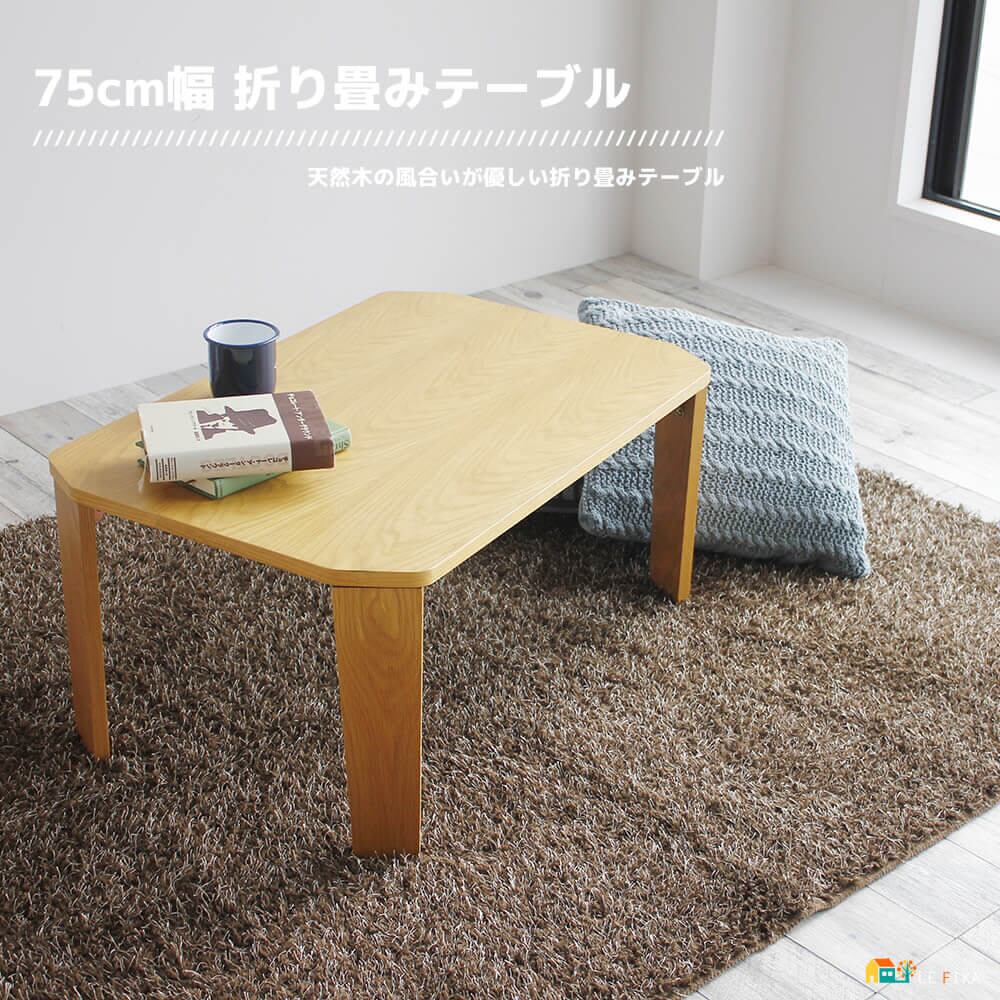テーブル 1台 単品 センターテーブル 折り畳みテーブル 75cm幅 ナチュラル 天然木使用 脚折り畳み可能 コンパクト 省スペース おすすめ おしゃれ 北欧 コンパクトテーブル 簡易テーブル リビングテーブル 来客用テーブル 机 ローテーブル 折り畳み式