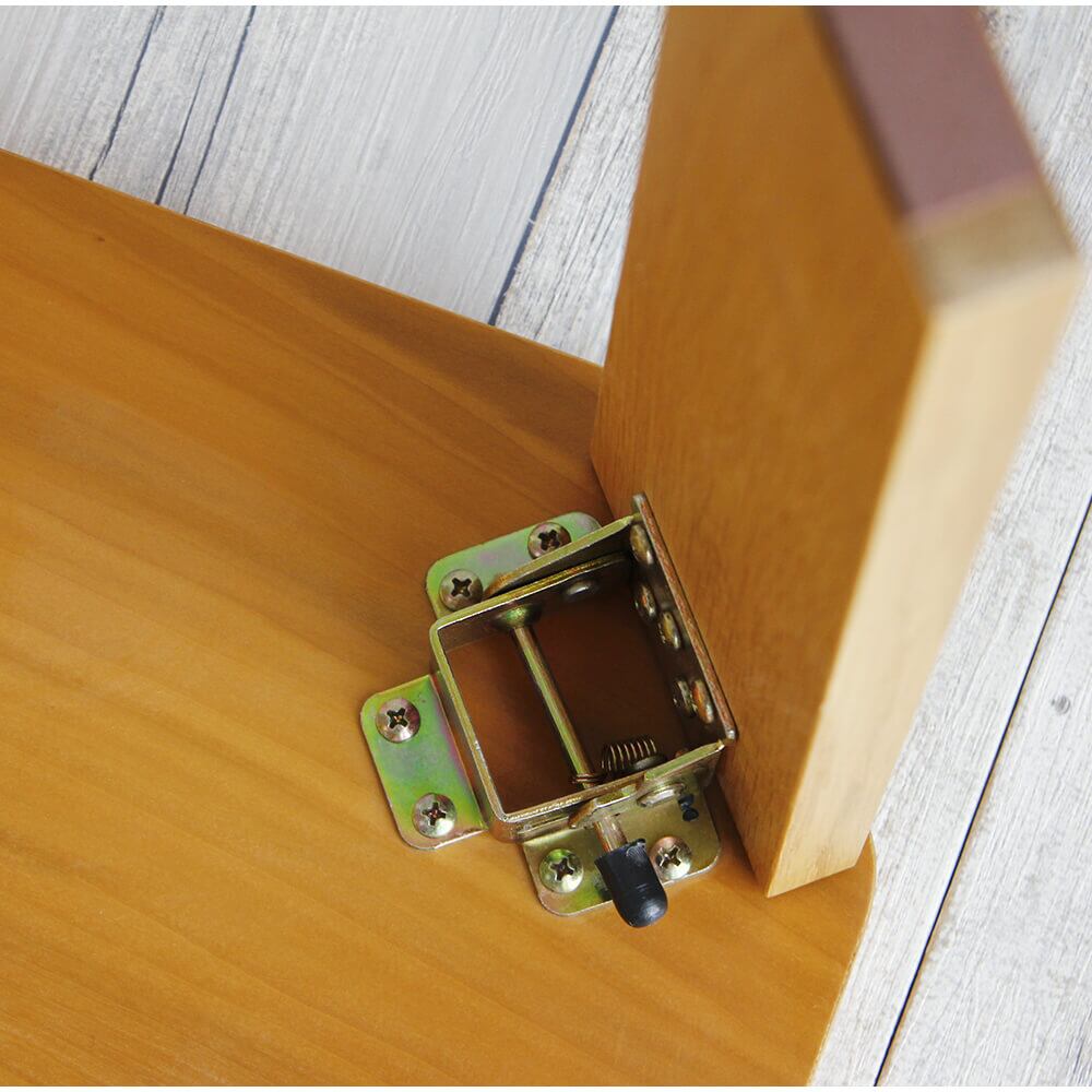 折りたたみはレバーを引いて脚を倒すだけの簡単仕様の折り畳みテーブルです。