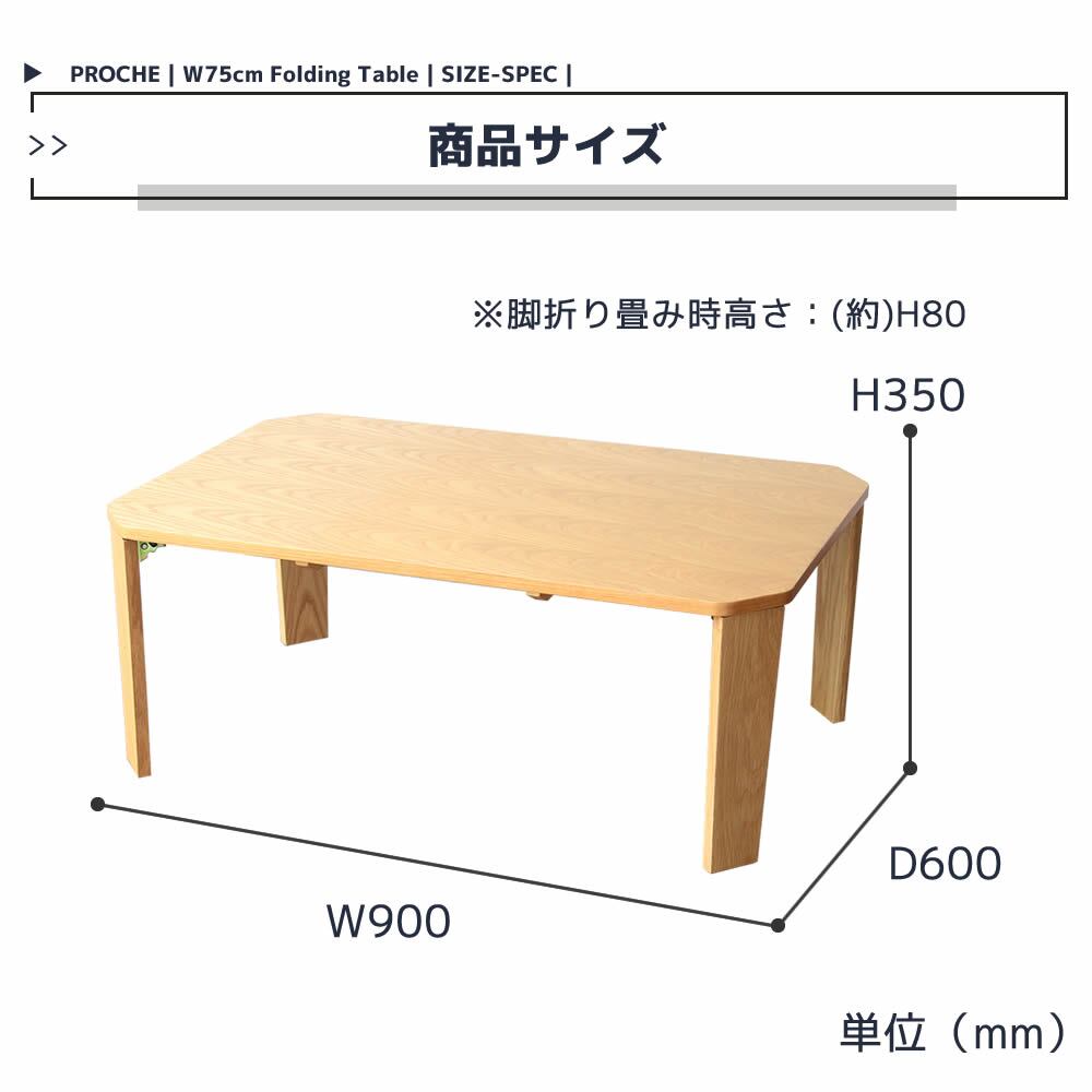 横幅90cmと一人暮らしや、来客が多い時のサブテーブルとして活躍する折り畳みテーブルです。