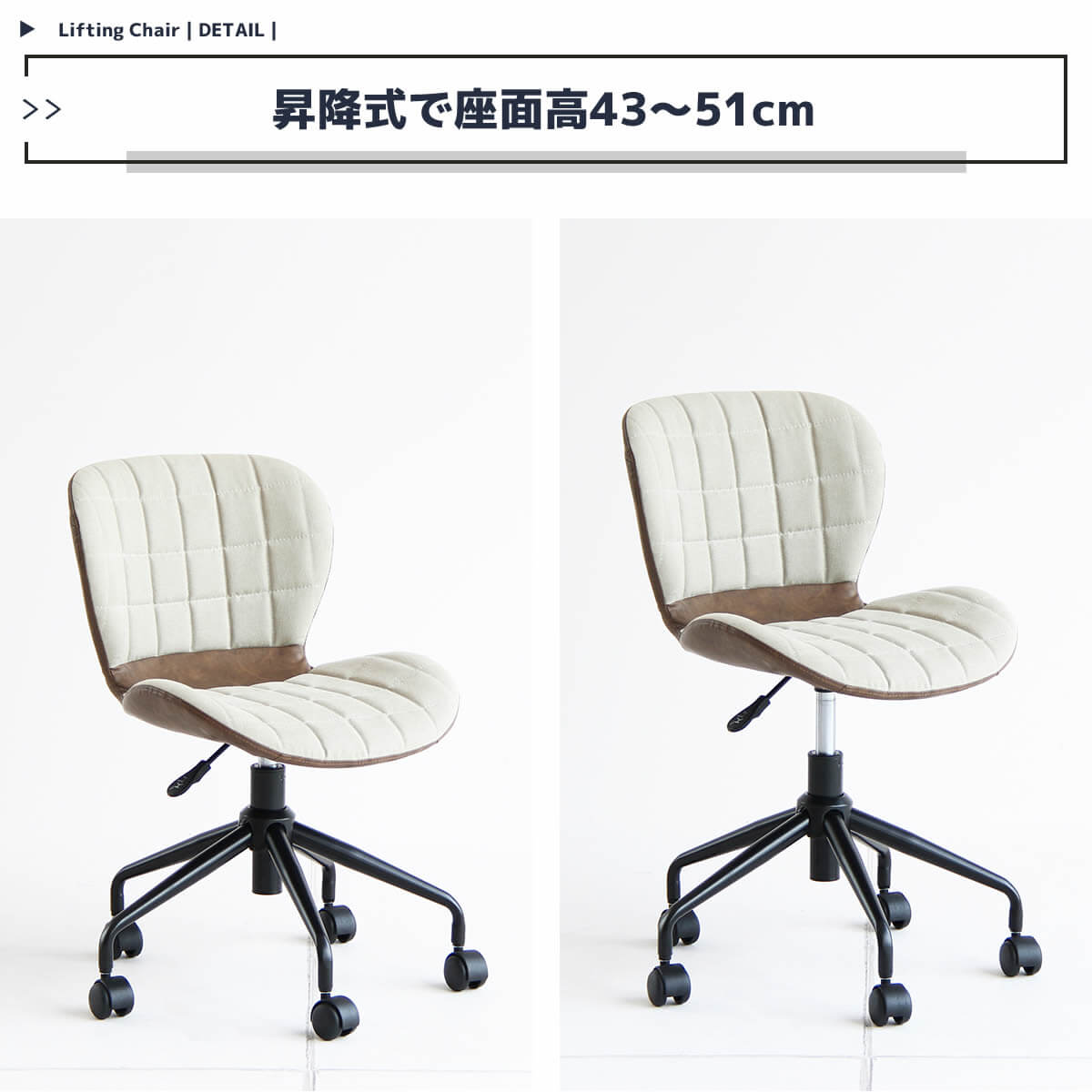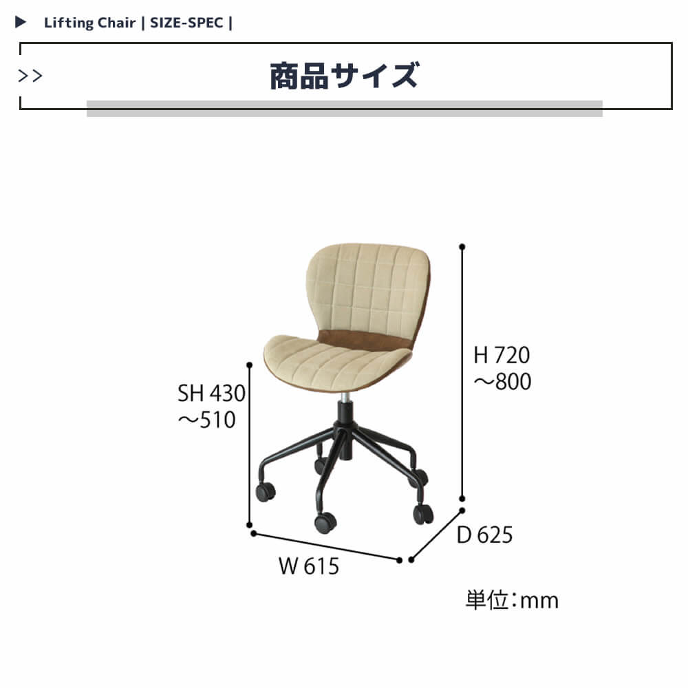 ■商品サイズ(約):幅61.5cm、奥行62.5cm、高さ72cm(座面高43cm)〜高さ80cm(座面高51cm)