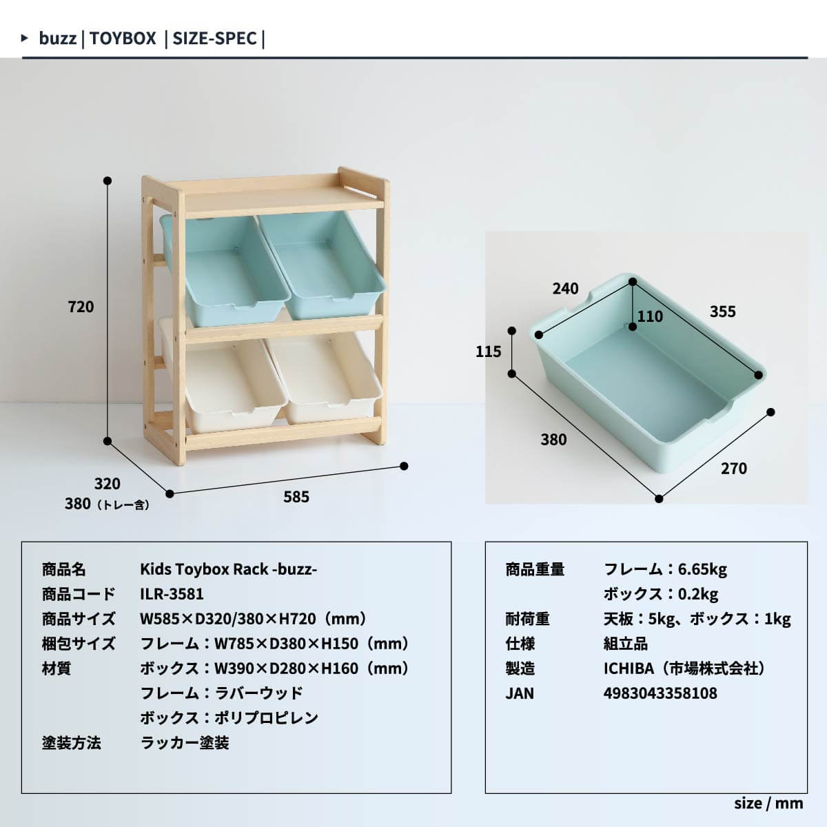 ■商品内容:キッズトイボックスラック×1台(※トレー×4個付属)
