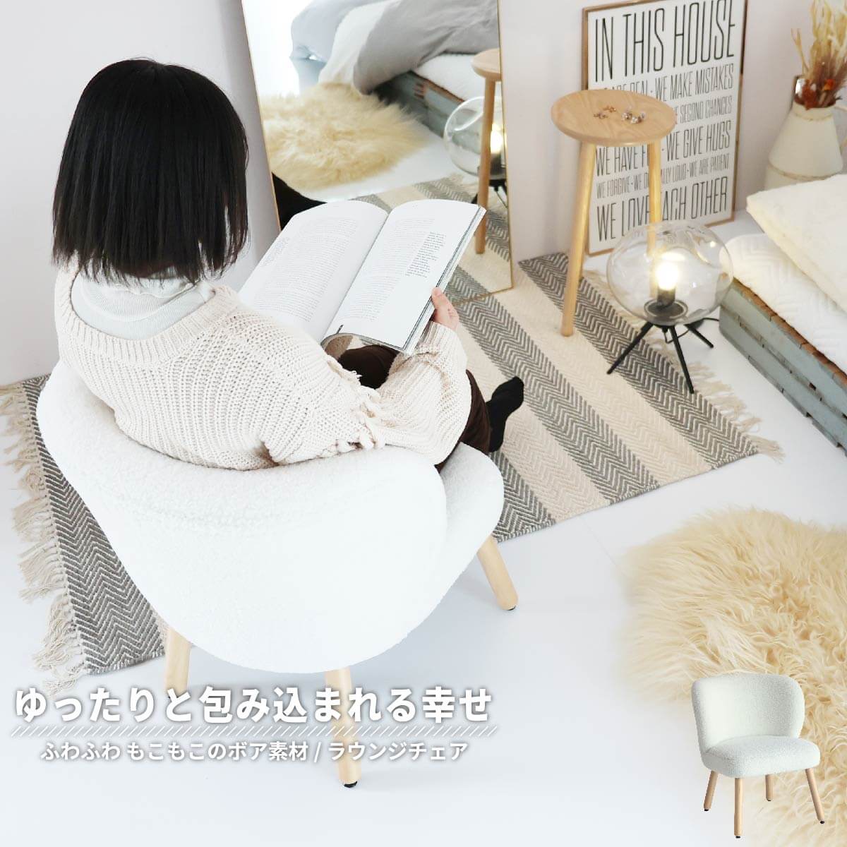 ボアチェア ラウンジチェア ホワイト 白 椅子 背もたれ付きチェア アームレスチェア 肘置き無しチェア イス チェアー リビングチェア 書斎チェア デスクチェア ドレッサー用チェア おすすめ おしゃれ 北欧 モダン かわいい もこもこ ふわふわ