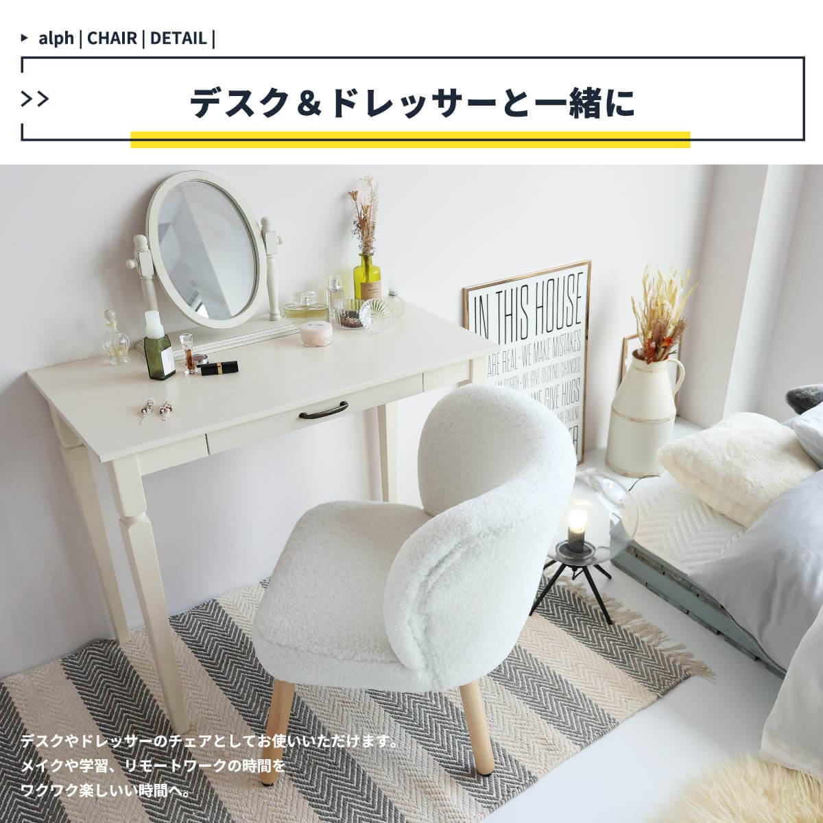 ドレッサーやデスクのチェアとしておすすめのボアチェアです。