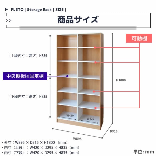 ■商品サイズ(約):幅89.5cm、奥行31.5cm、高さ180cm