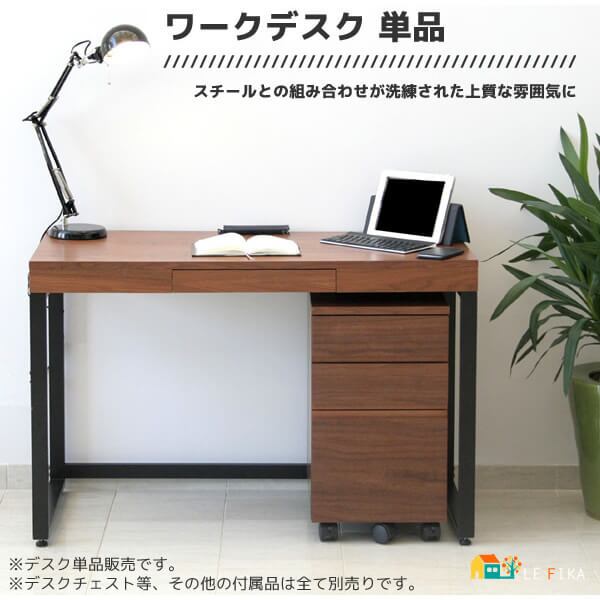 ワークデスク スチール脚 デスク 机 110cm幅 おすすめ おしゃれ 北欧 ブラウン 茶色 リモートワーク テレワーク 引き出し付き 机 在宅ワーク 仕事机 書斎デスク 引き出し付きデスク オフィスデスク 仕事用机 オフィス机 書斎机