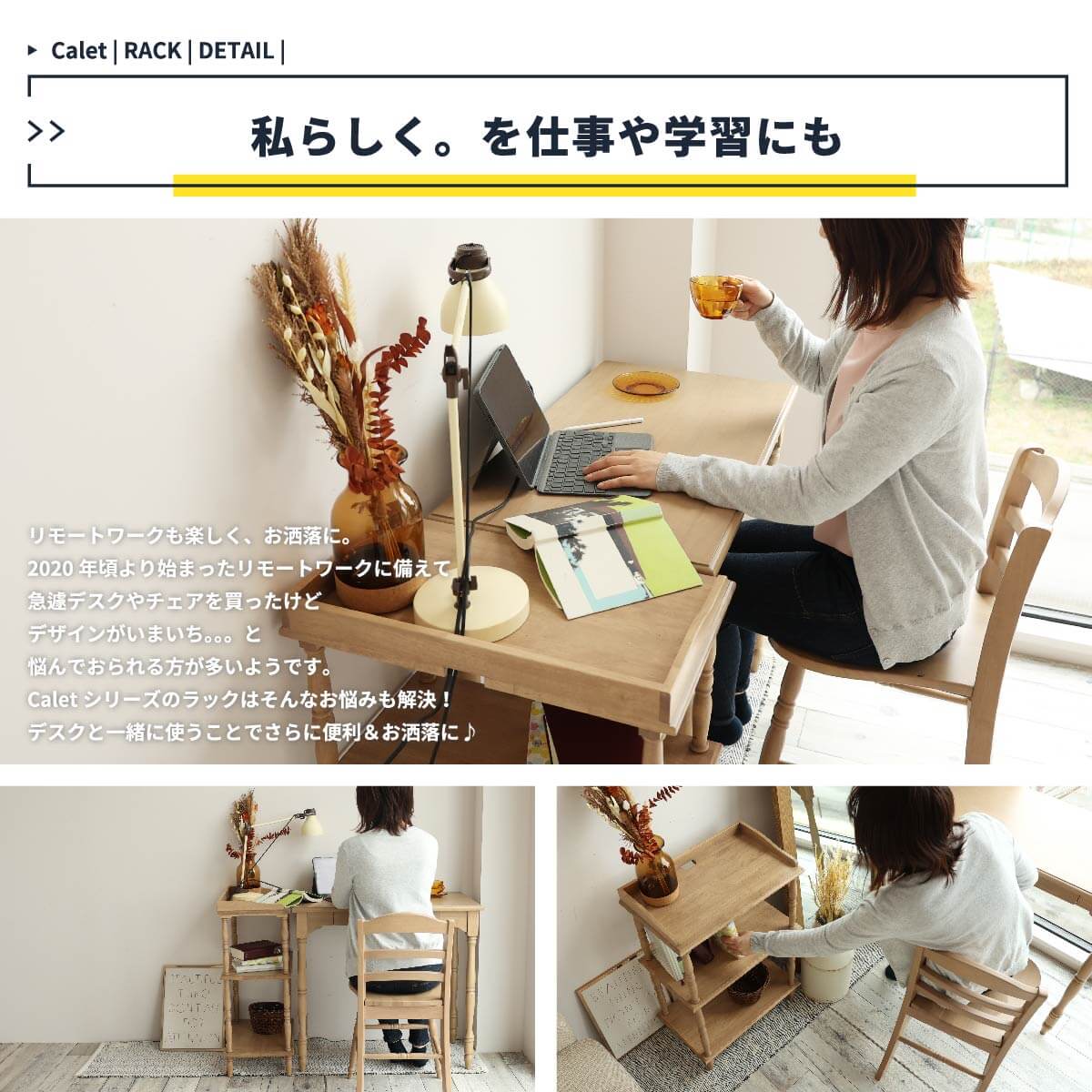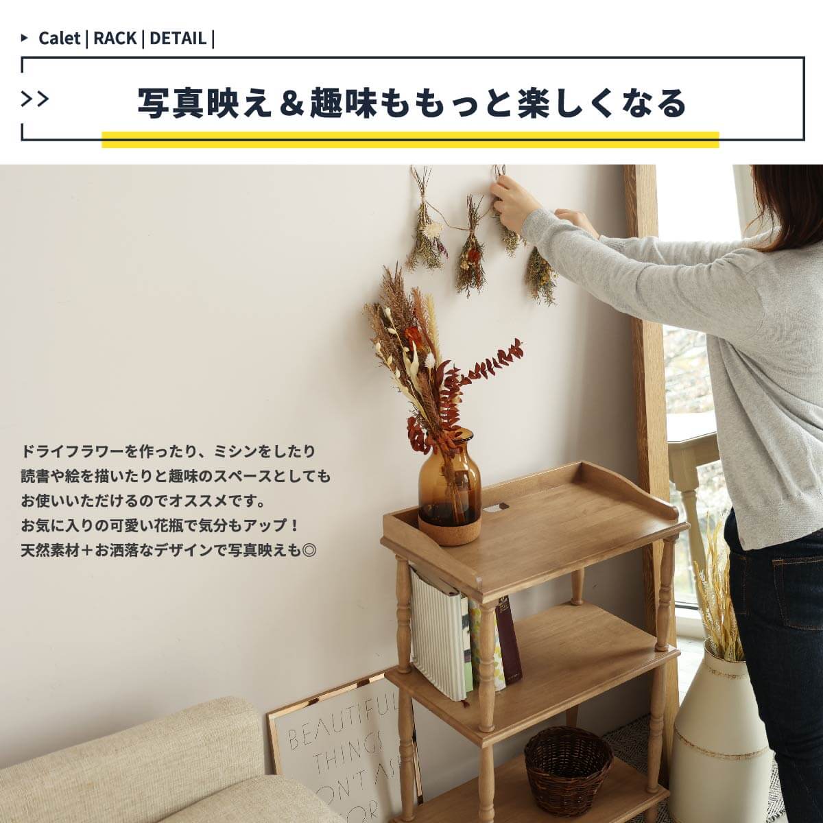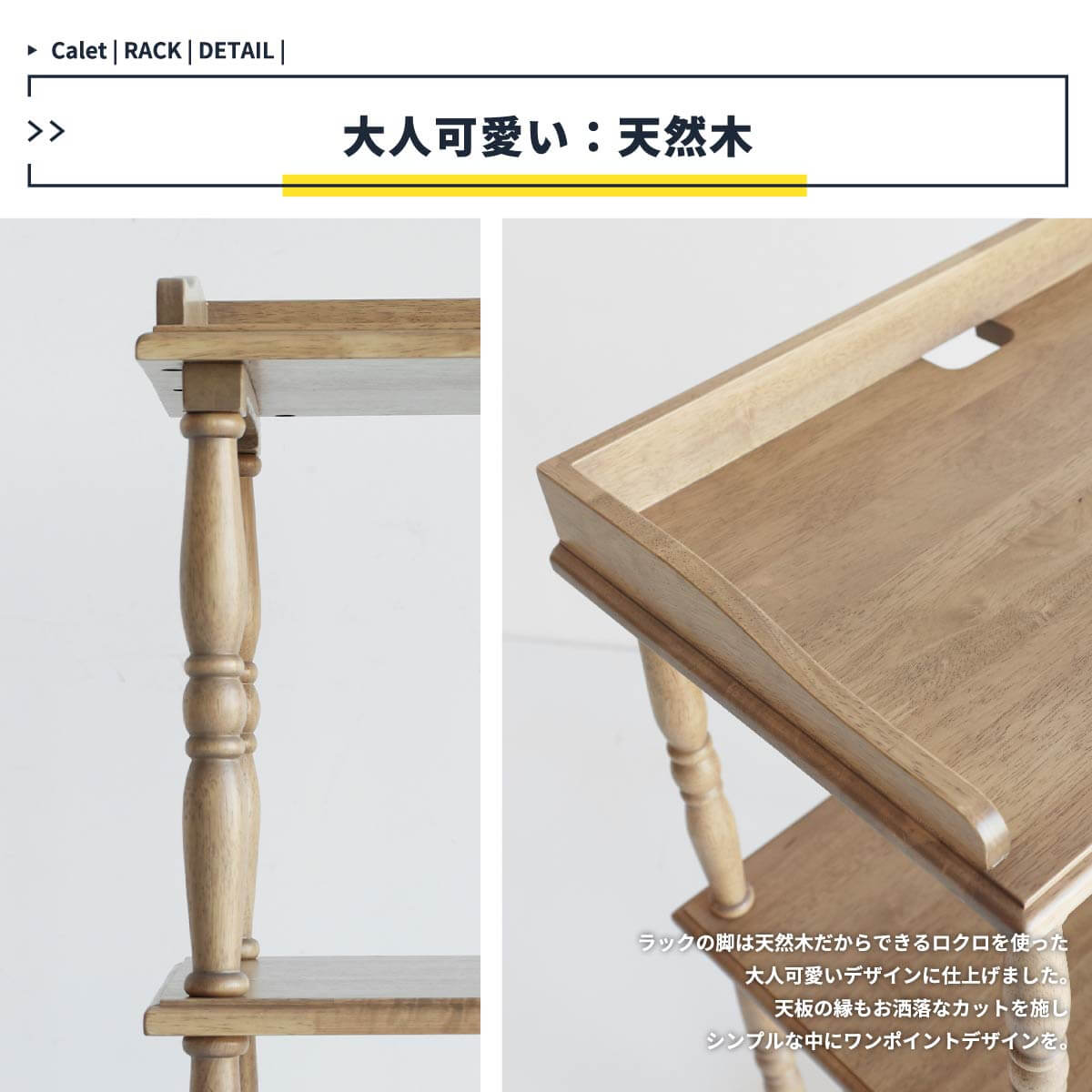 人気のラックは天然木を活かしたお洒落な加工がポイントです。