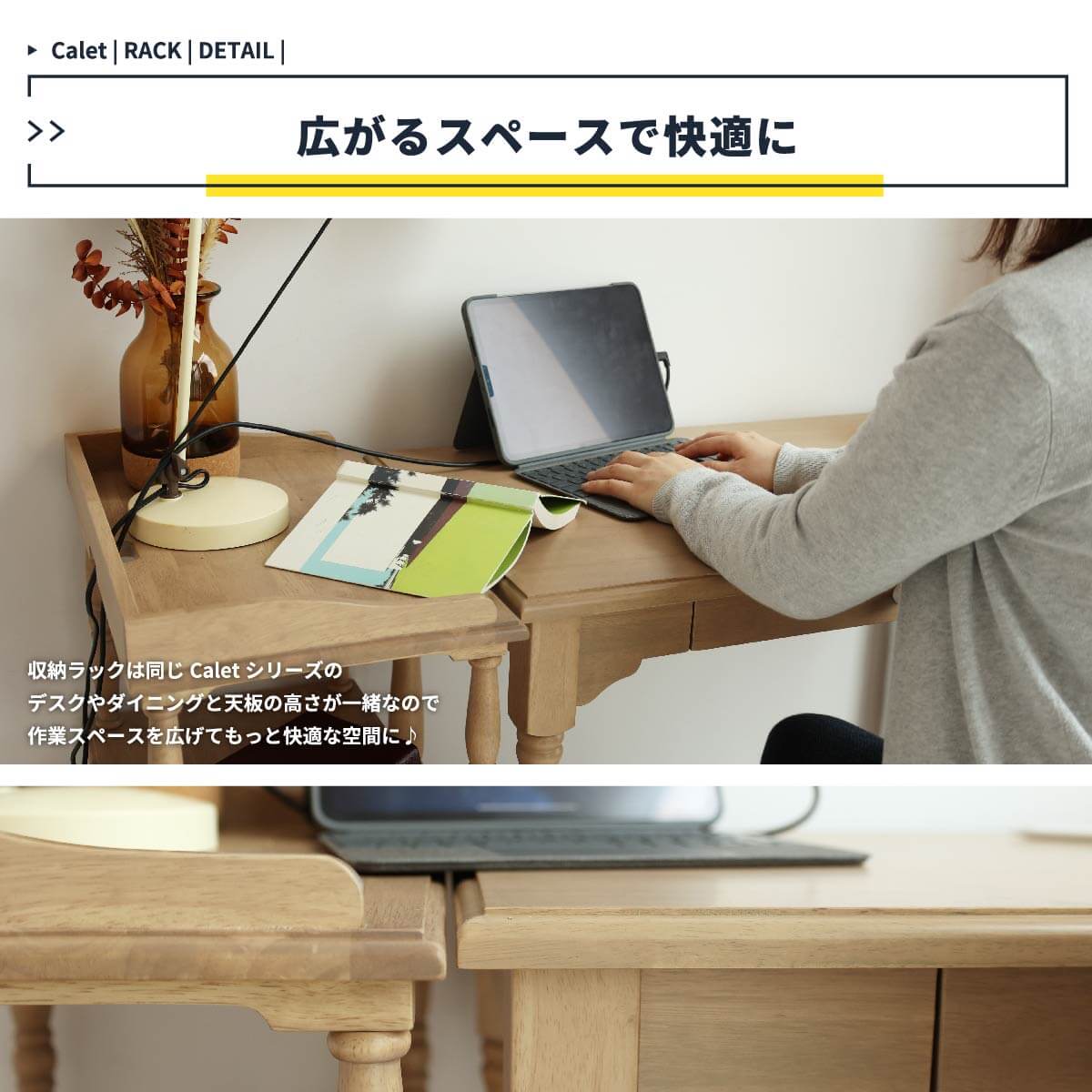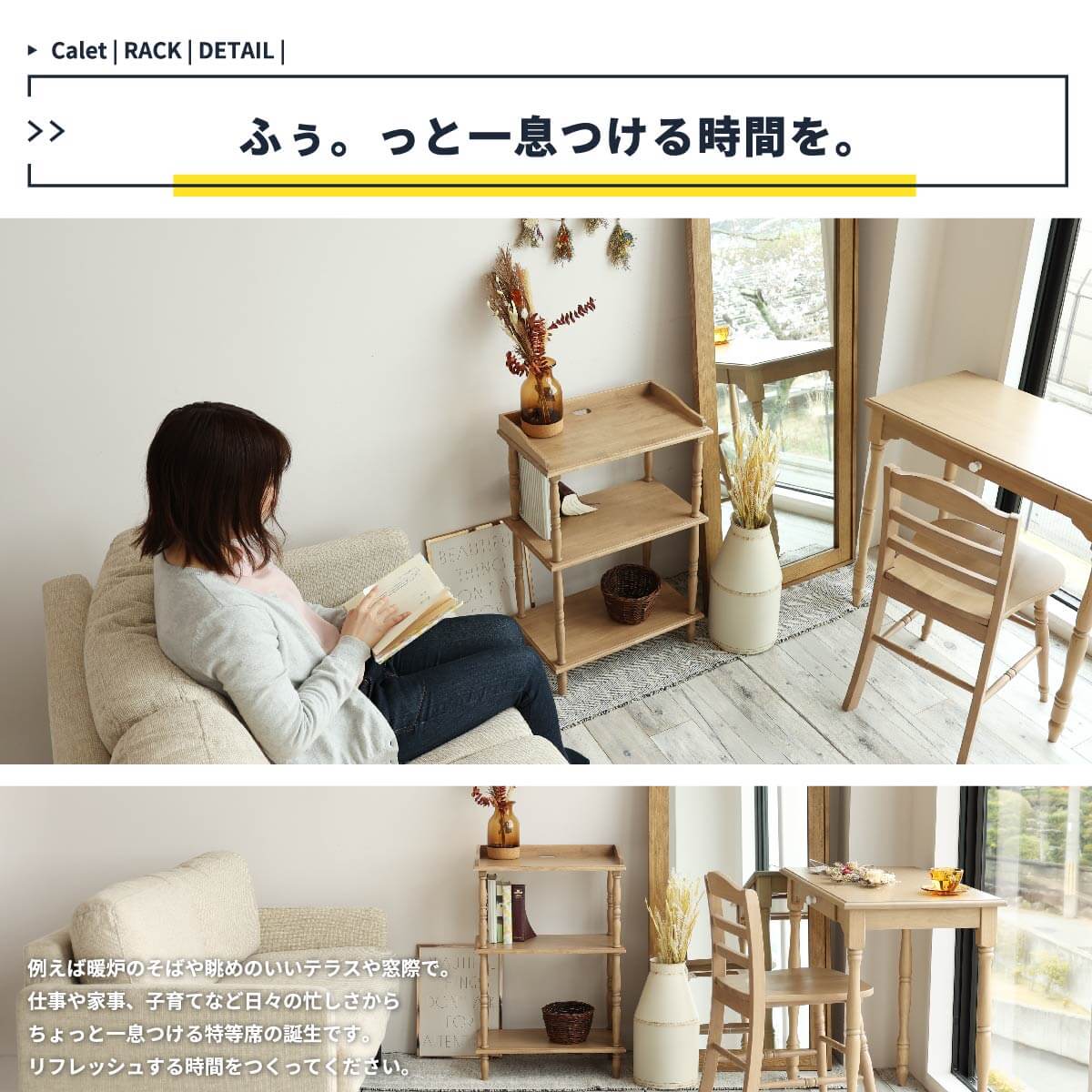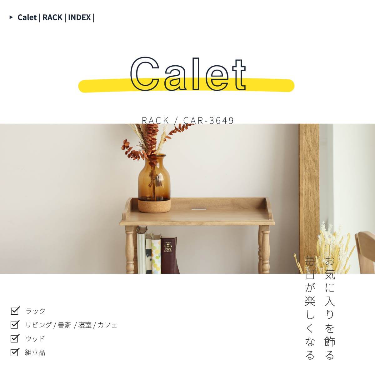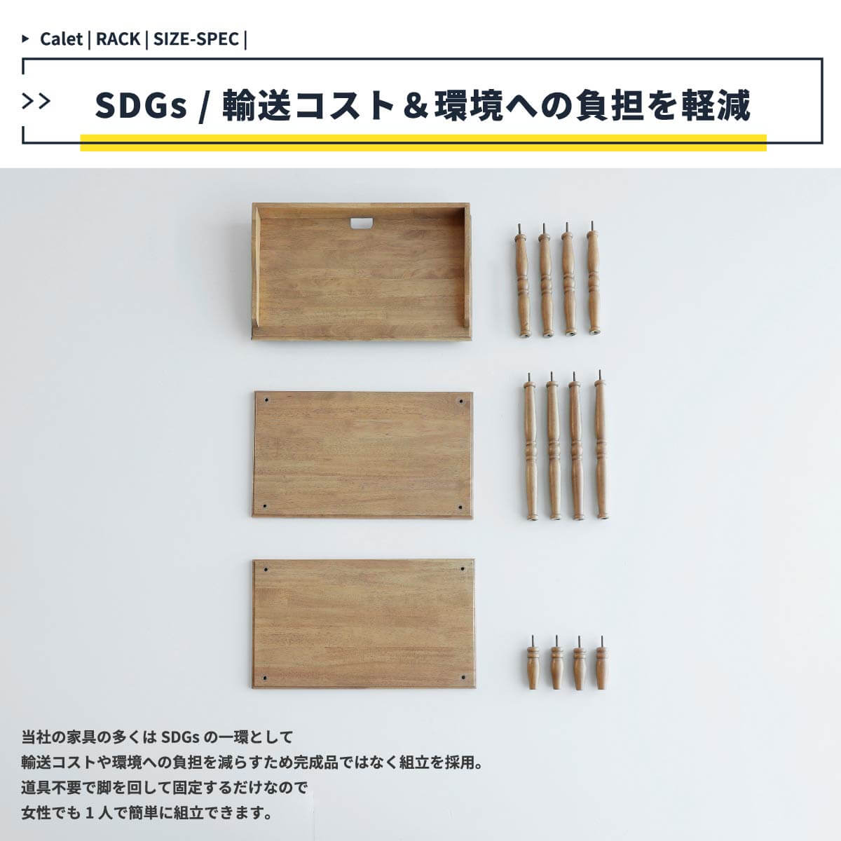 人気のラックは天然木を活かしたお洒落な加工がポイントです。