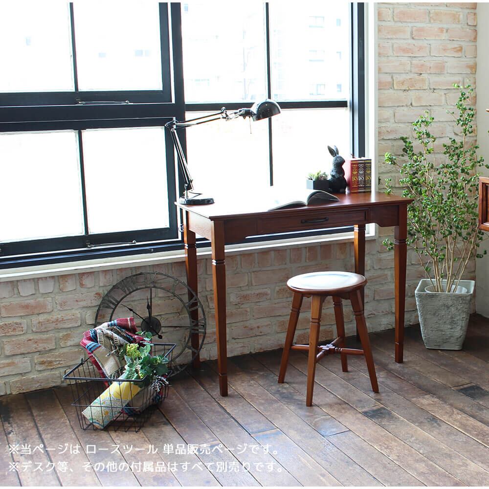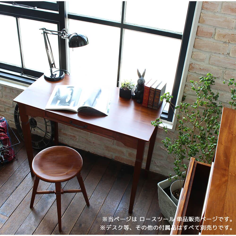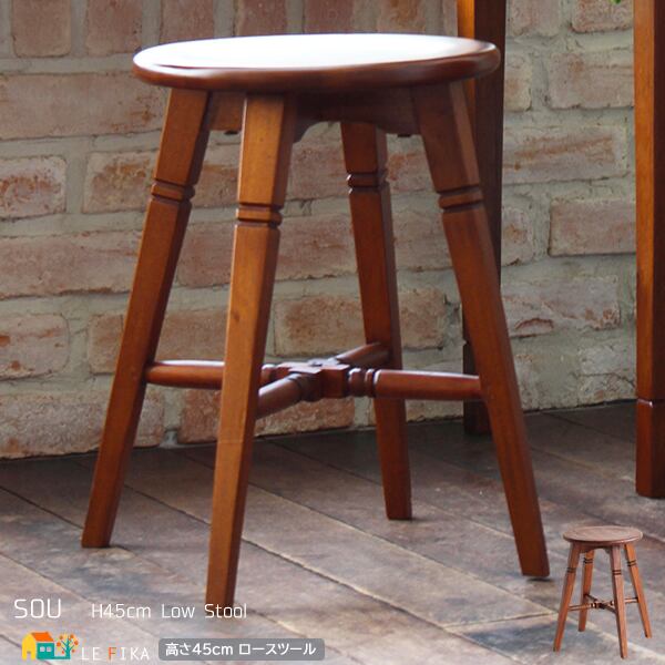 脚や桟のデザインなど、細部のデティールにもこだわった丸形のロースツールです。