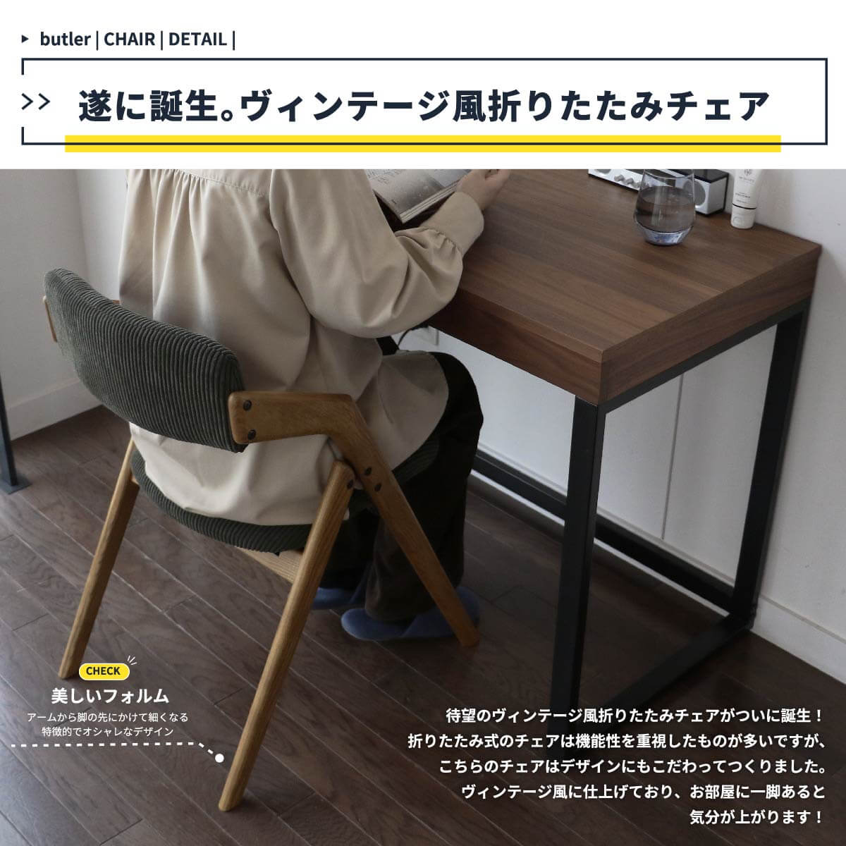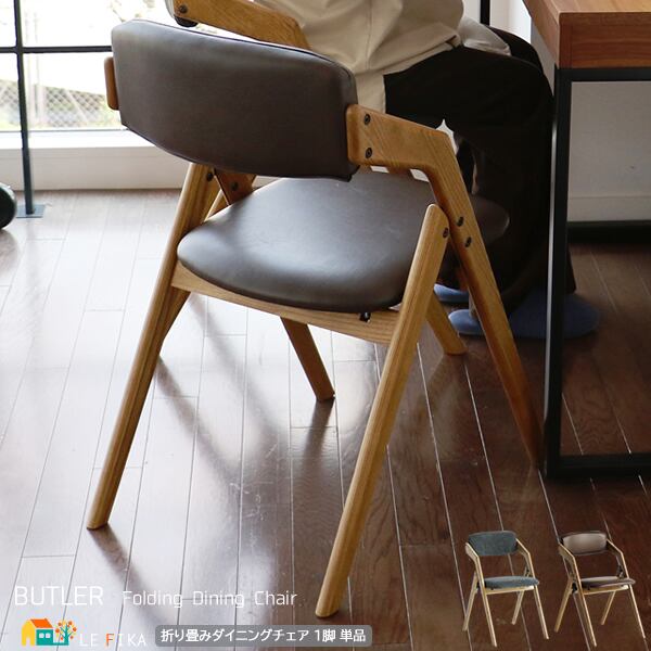 ヴィンテージ風で洗練されたデザインの折りたたみ機能付きのダイニングチェア1脚単品です。