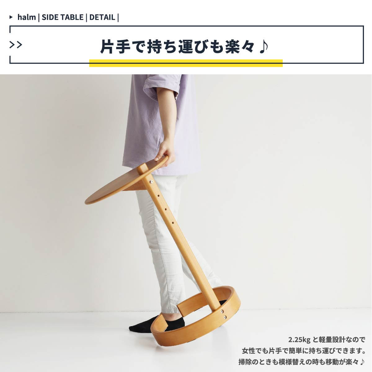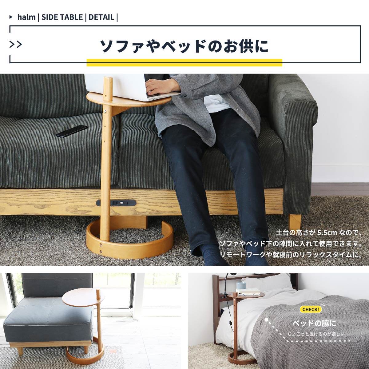 天板の高さが4段階調節可能で、土台はC型の隙間があるため、ソファやベッドで使用する際に手前に引き寄せて設置することが可能なサイドテーブルです。