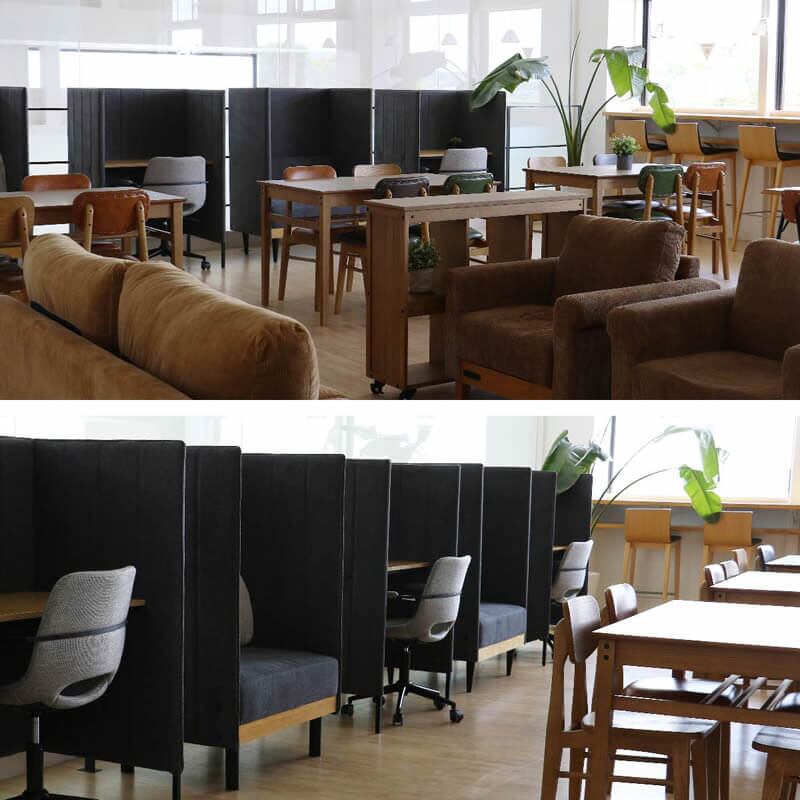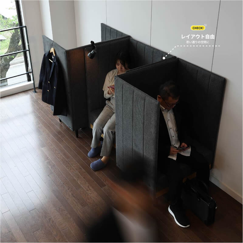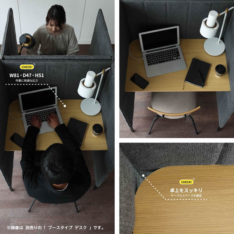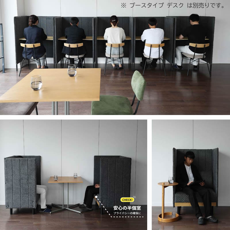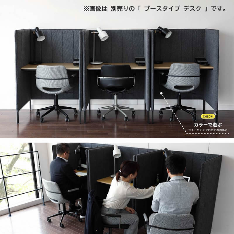 別売りのブースタイプデスクと組み合わせることで、プライべートなワークスペースを作ることができます。