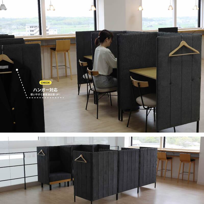プライバシーを確保しつつ、開放感のあるプライベート空間をつくることができるブースタイプソファ1脚単品です。
