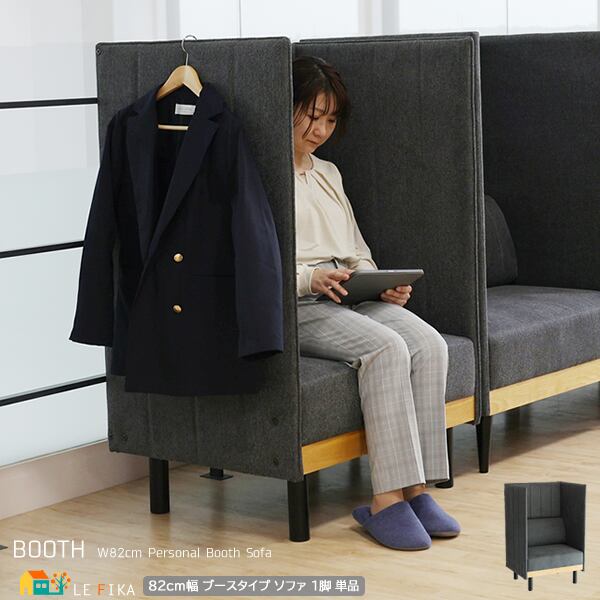 ブースタイプソファ 82cm幅 グレー パーテーションソファ パネルソファ パネルチェア 間仕切りソファ 一人用 パーテーション付ソファ オフィス用 ワークチェア 幅82cm 奥行65.5cm 高さ123.5cm 座面高43cm おすすめ おしゃれ 北欧 モダン スタイリッシュ 一人掛 ブースソファ