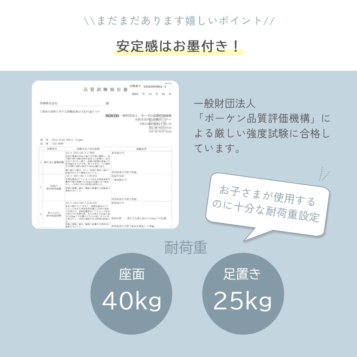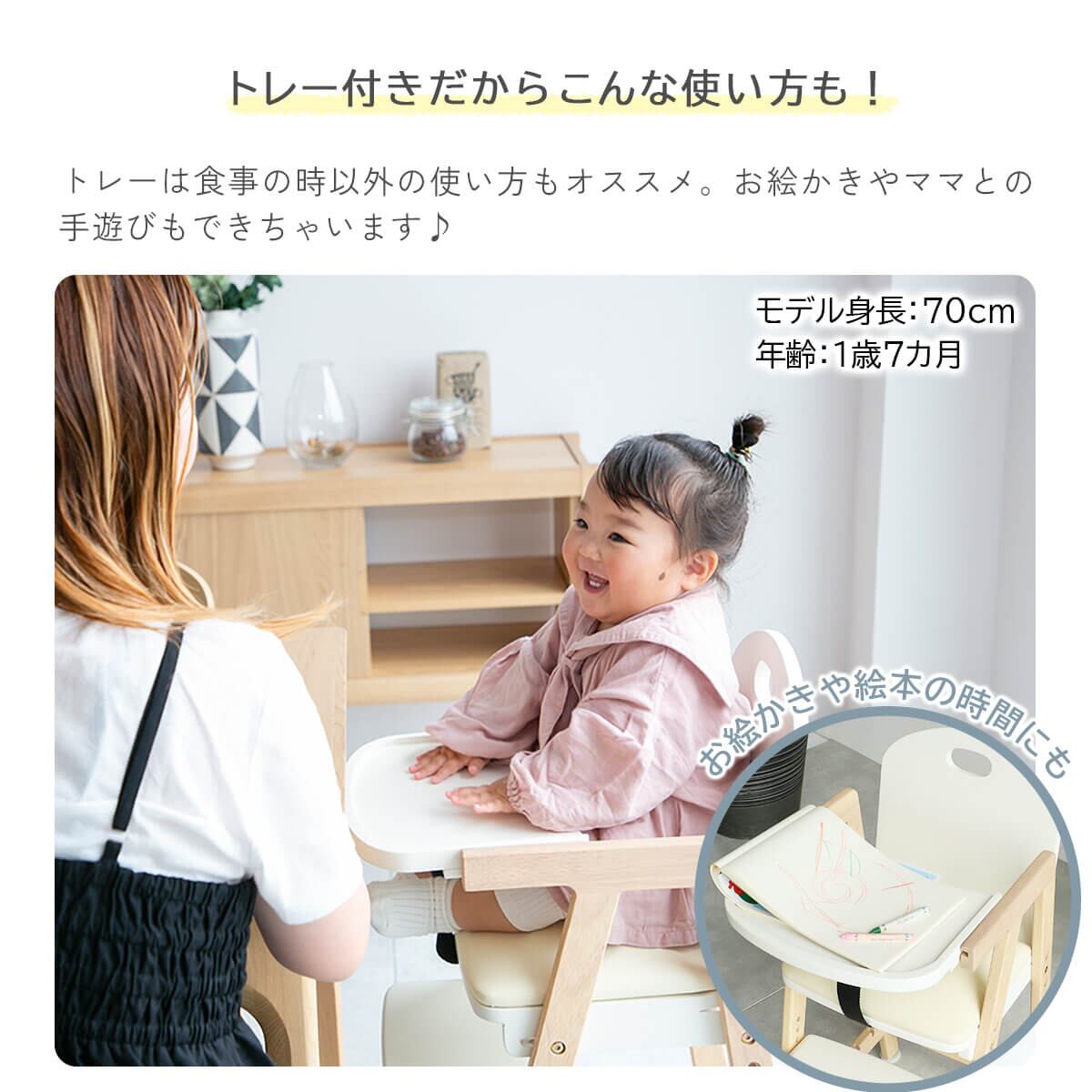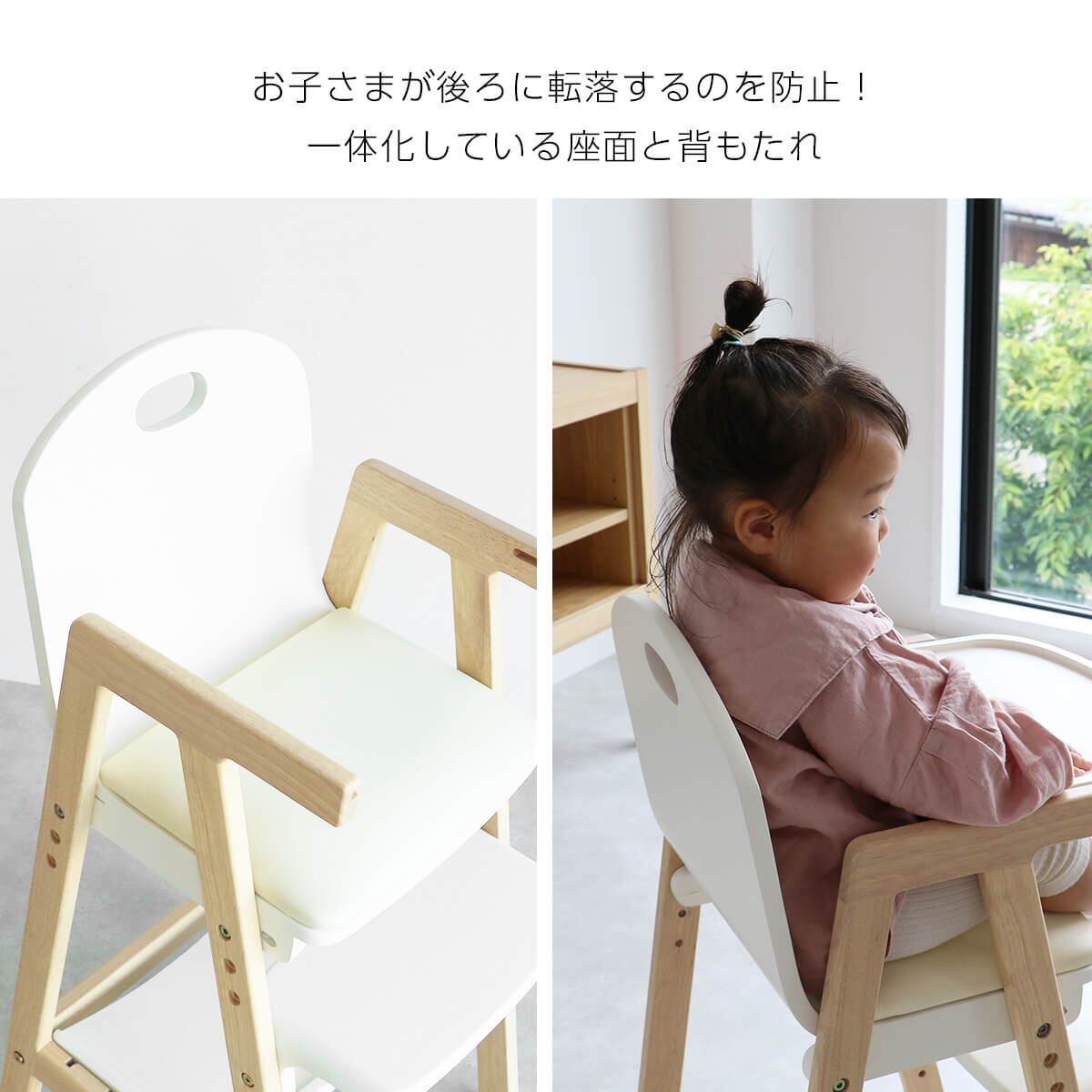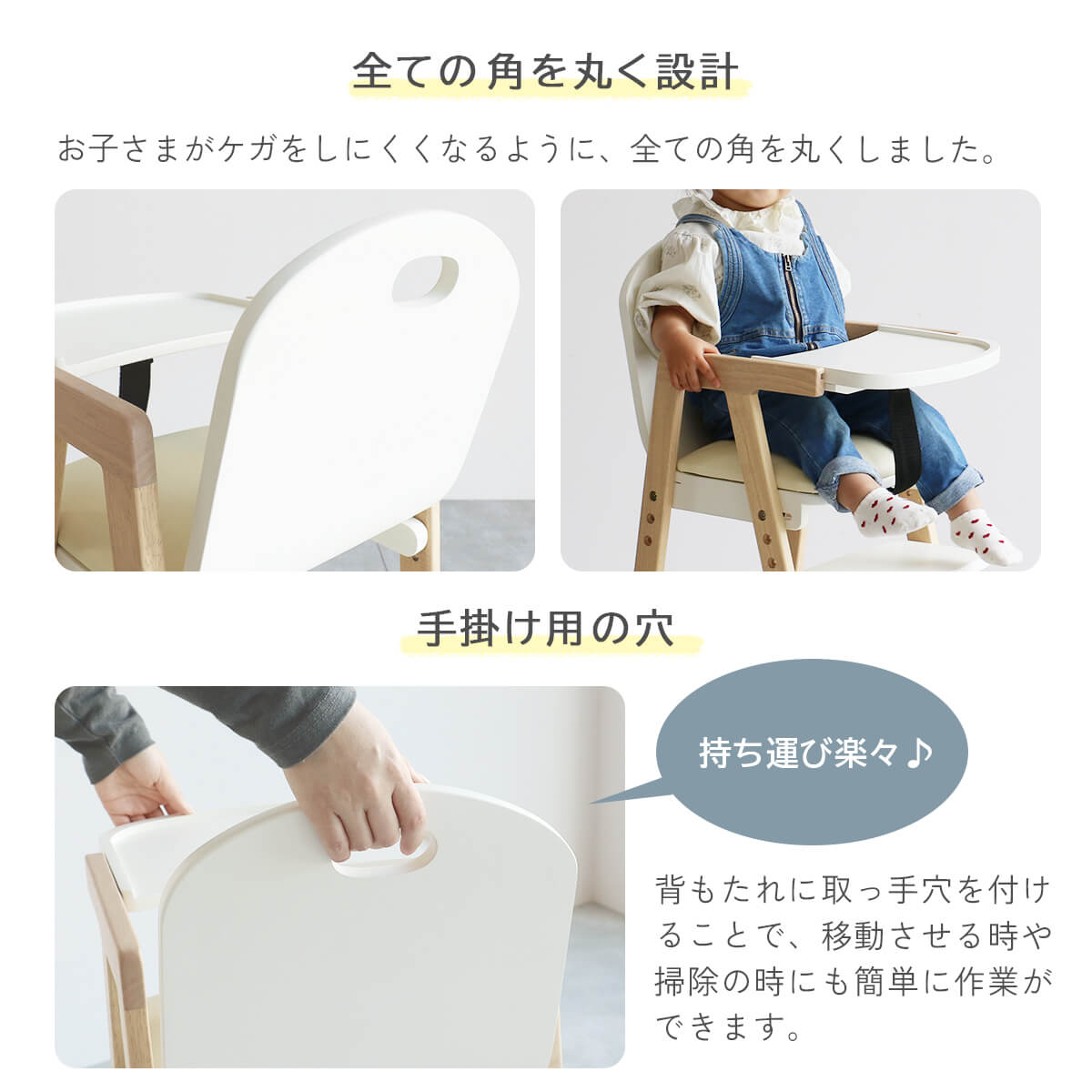 トレーや安全ベルトなど、標準装備が充実しているキッズハイチェアです。