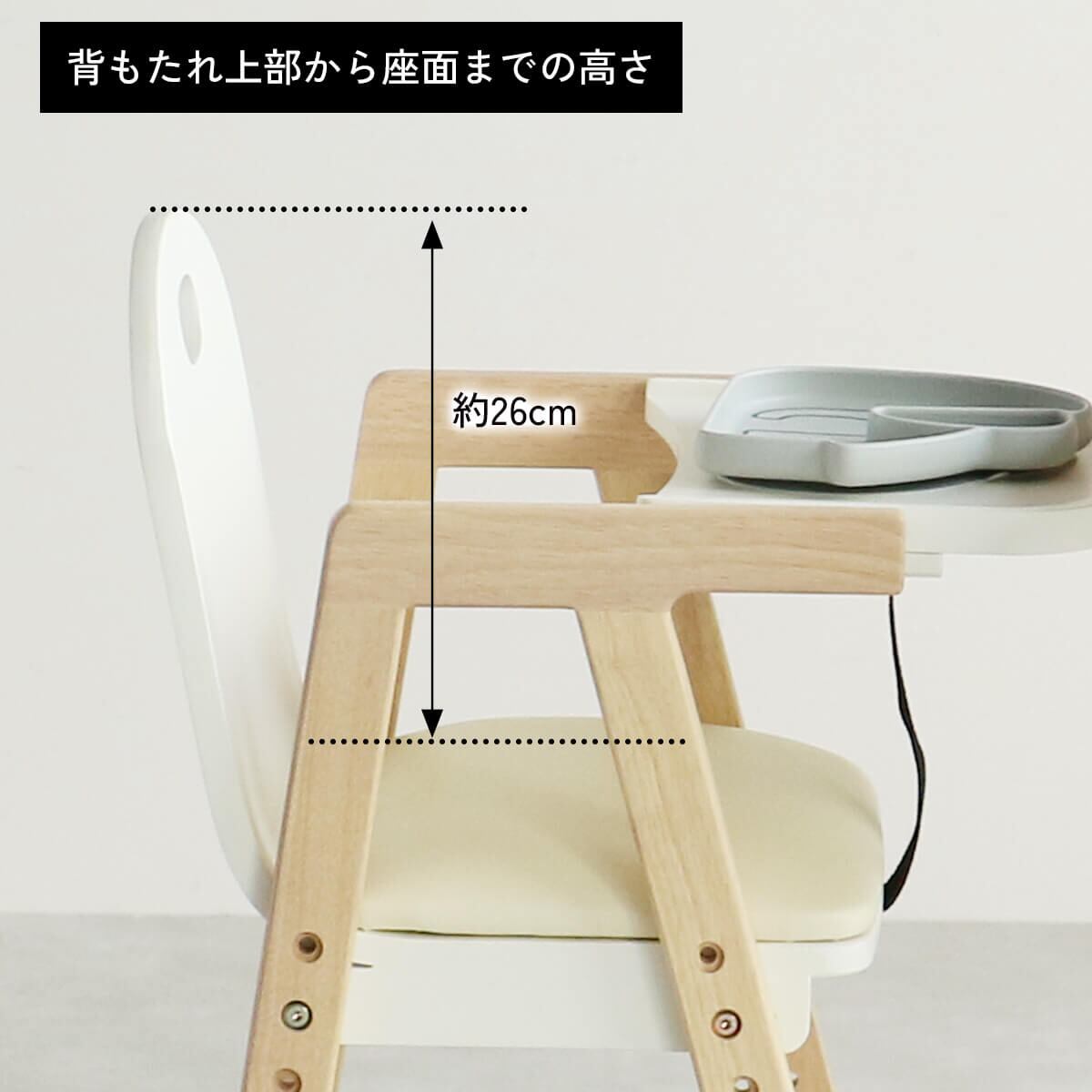 キッズハイチェア 35cm幅 アイボリー トレー付き 子供用ダイニングチェア キッズチェア 足置き付き ベルト付き PVCチェア 天然木使用 幅35cm 奥行40.cm 高さ78cm 最大座面高46cm おすすめ おしゃれ 北欧 モダン 子供用チェアー 座面高さ調節可能 アジャスター付き 椅子