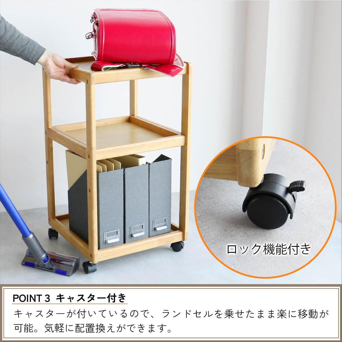サイドラック キャスター付きラック 3段ラック 三段ラック 収納ラック デスク横ラック キャスター付き収納ラック ランドセルラック ランドセル収納 収納棚 三段収納棚 キャスター付き収納 ナチュラル 木製ラック ウッドラック キッチンワゴン サイドテーブル おすすめ おしゃれ 北欧 モダン スタイリッシュ キャスター付き収納ラック