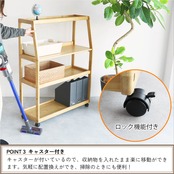 キャスター付きなので、お掃除の際など、収納物を入れたまま移動ができる収納ラックです。