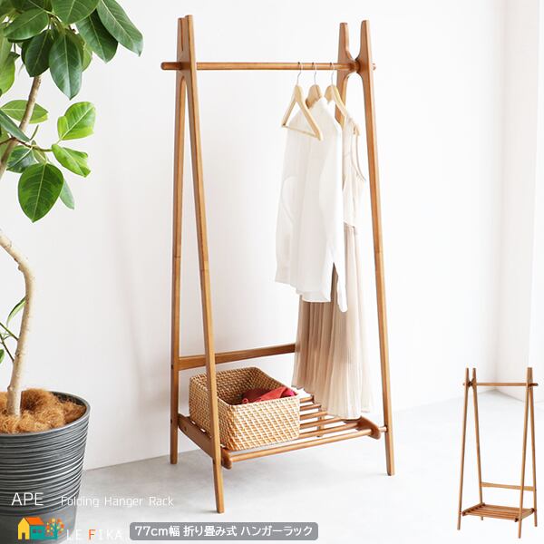 ハンガーランク 折り畳み式ハンガーラック 衣類ラック 衣類ハンガー 木製ハンガーラック ブラウン 棚板付きハンガーラック 折り畳みハンガーラック 収納 衣類収納 コートハンガー 洋服ハンガー おすすめ おしゃれ 北欧 モダン スタイリッシュ 木製 折りたたみ式 コンパクト収納 スリム 省スペース収納