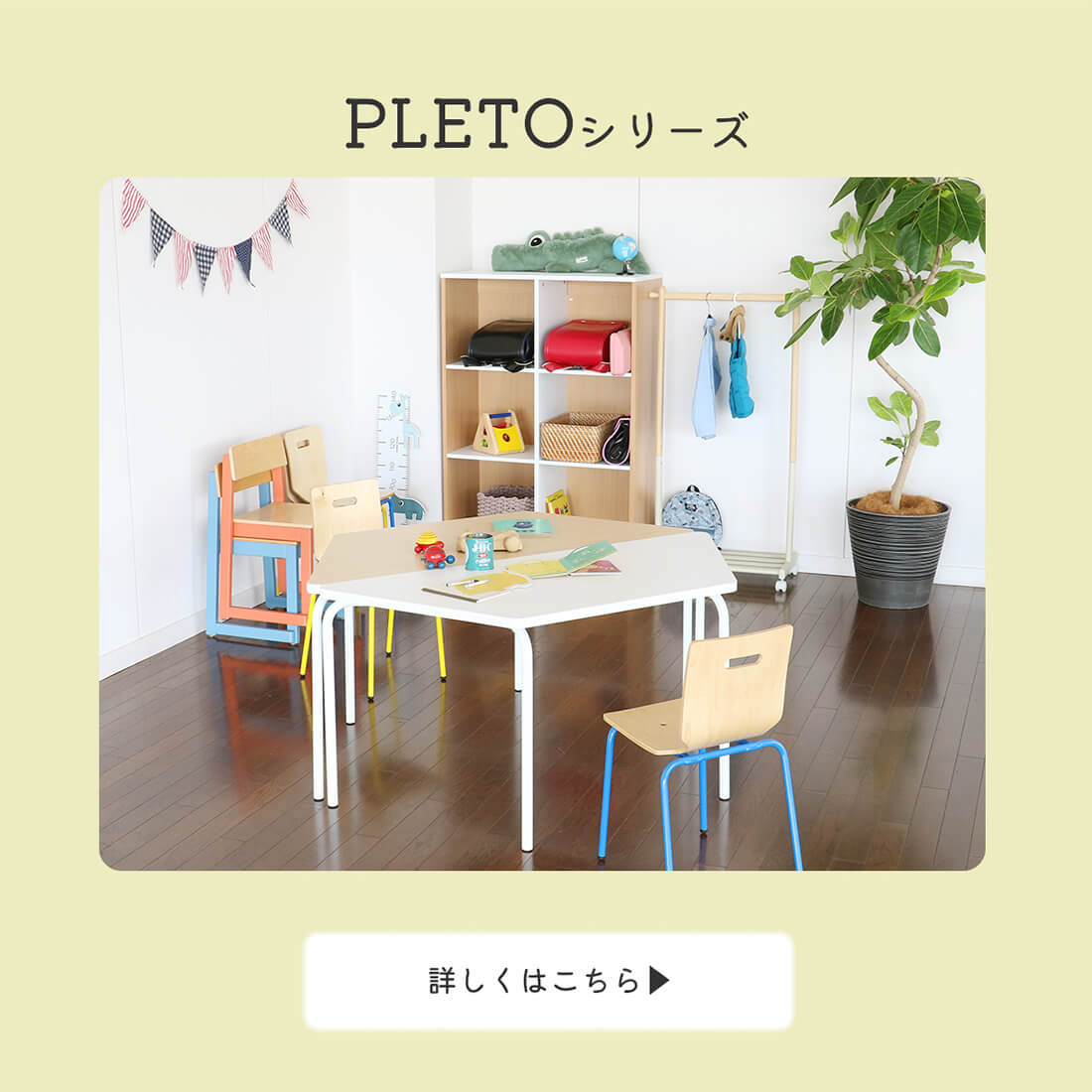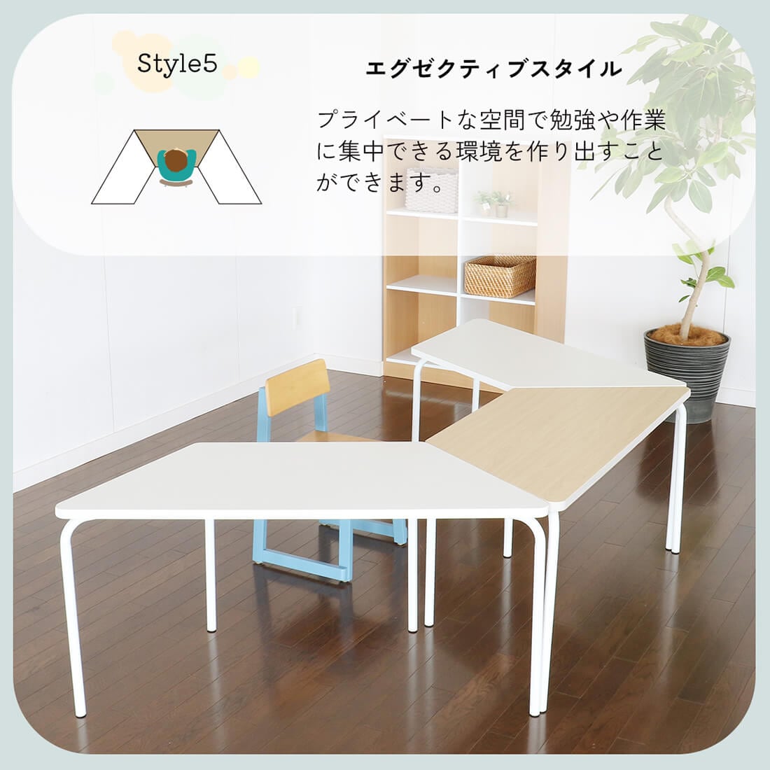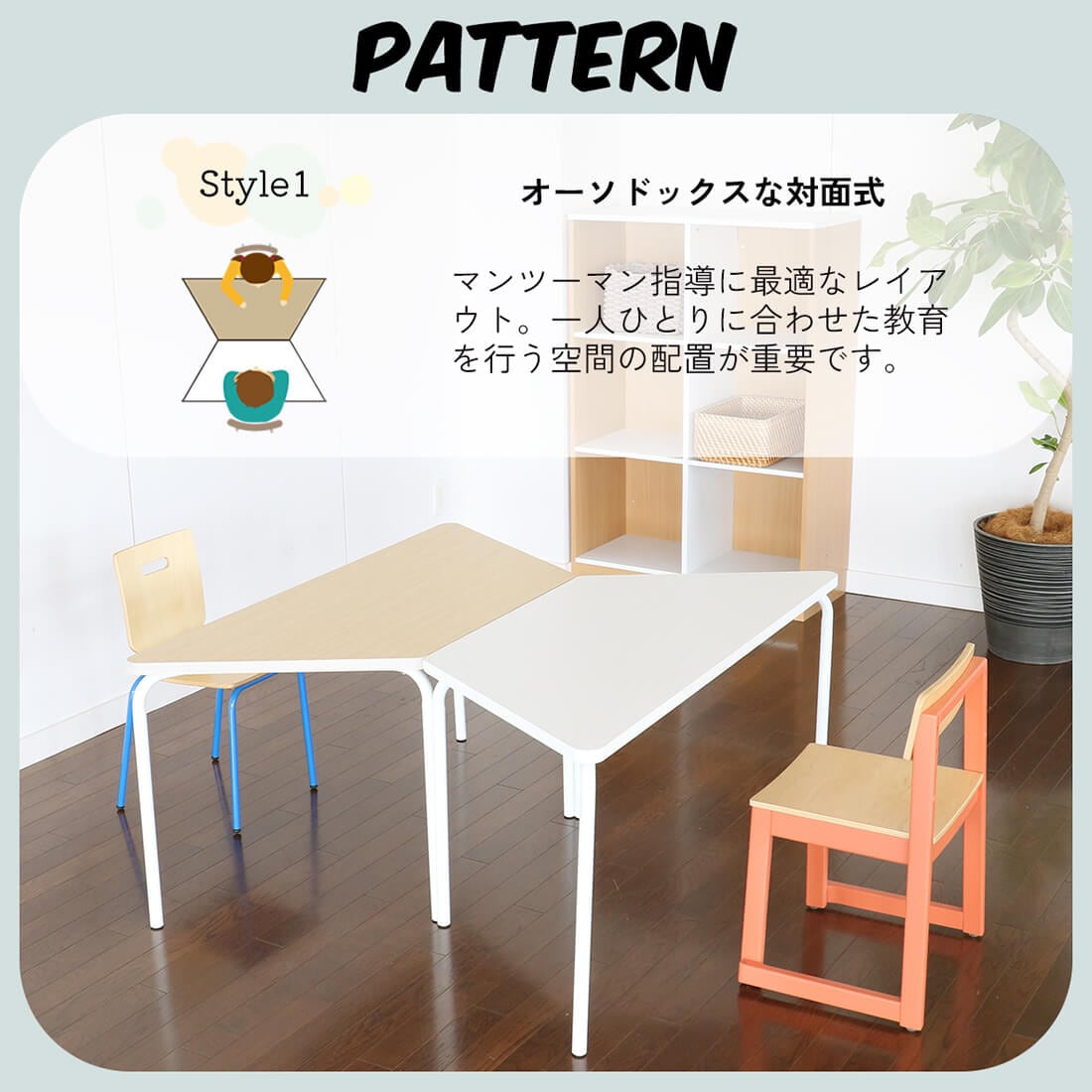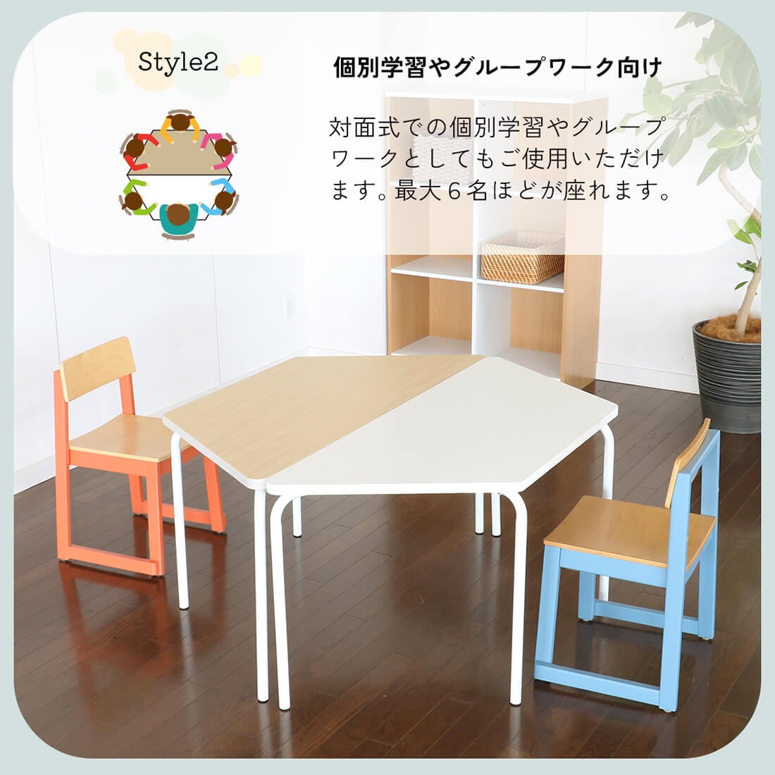 複数台をつなげることにより色んなレイアウトでの設置が可能なので、塾や保育園、幼稚園など様々な場面で学びの空間を作ることができます。