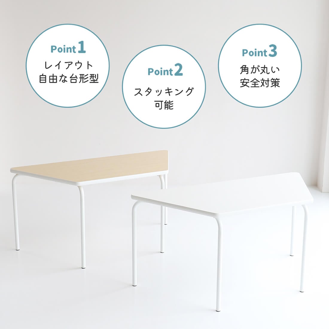 ユニットテーブル 台形型テーブル 120cm幅 ナチュラル ホワイト スタッキングテーブル 机 テーブル 学習机 台形テーブル 塾 幼稚園 保育園 作業台 作業テーブル おすすめ おしゃれ 北欧 モダン スタイリッシュ 作業用テーブル キッズテーブル 子供用テーブル センターテーブル