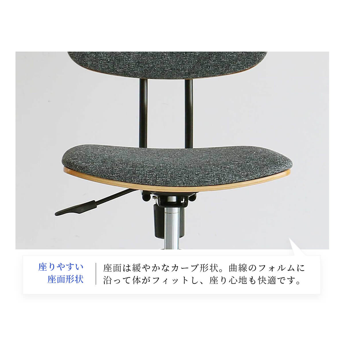 座面は緩やかなカーブ形状で、曲線フォルムに沿って体がフィットし、座り心地も快適なキャスター付きワークチェア1脚単品です。