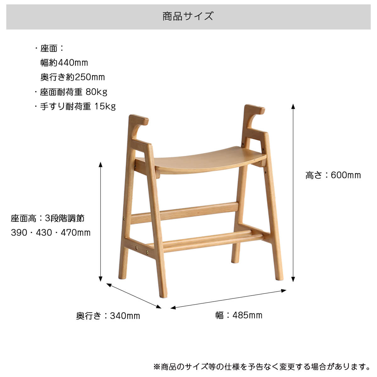 ■耐荷重(約):座面80kg、手すり15kg