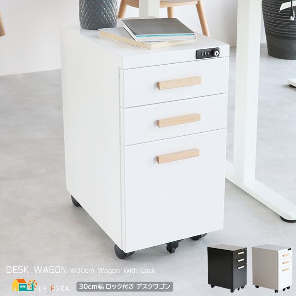 デスクワゴン 30cm幅 ブラック ホワイト 黒 白 サイドワゴン デスク用ワゴン 3段ワゴン ダイヤルロック付き 幅30cm 奥行45cm 高さ58cm おすすめ おしゃれ 北欧 モダン キャスター付き 収納ワゴン ロック付きワゴン オフィス収納ワゴン 書類収納 三段収納ワゴン 鍵付きワゴン