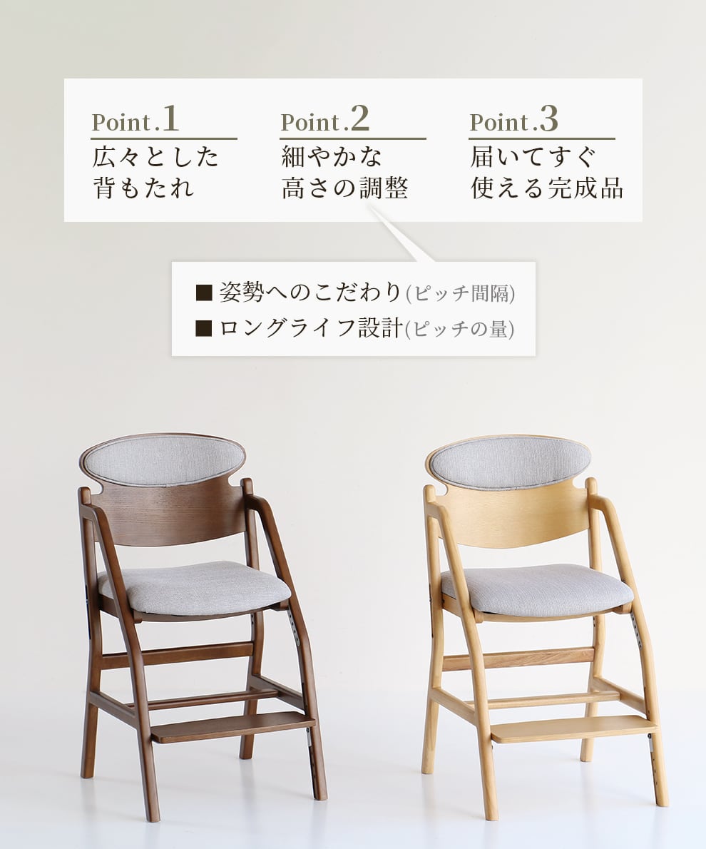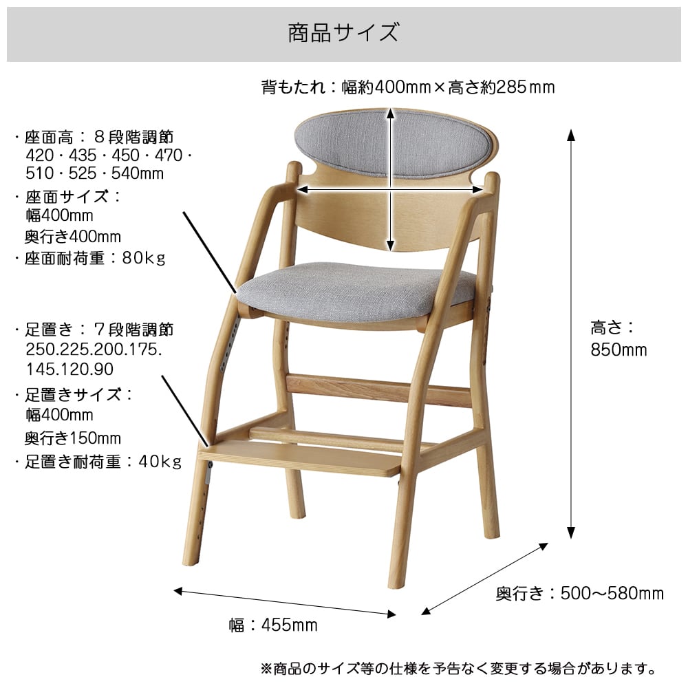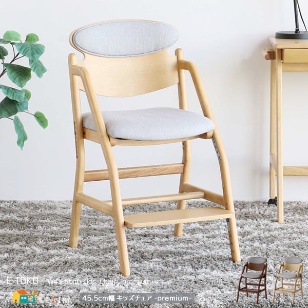 キッズチェア premium 45.5cm幅 ブラウン ナチュラル ダイニング学習チェア 子供用チェア 学習チェア キッズ学習椅子 幅45.5cm 奥行50cm 最大奥行58cm 高さ85cm 座面高42cm 最大座面高54cm おすすめ おしゃれ 北欧 モダン スタイリッシュ 木製椅子 学習椅子 高さ調整可能