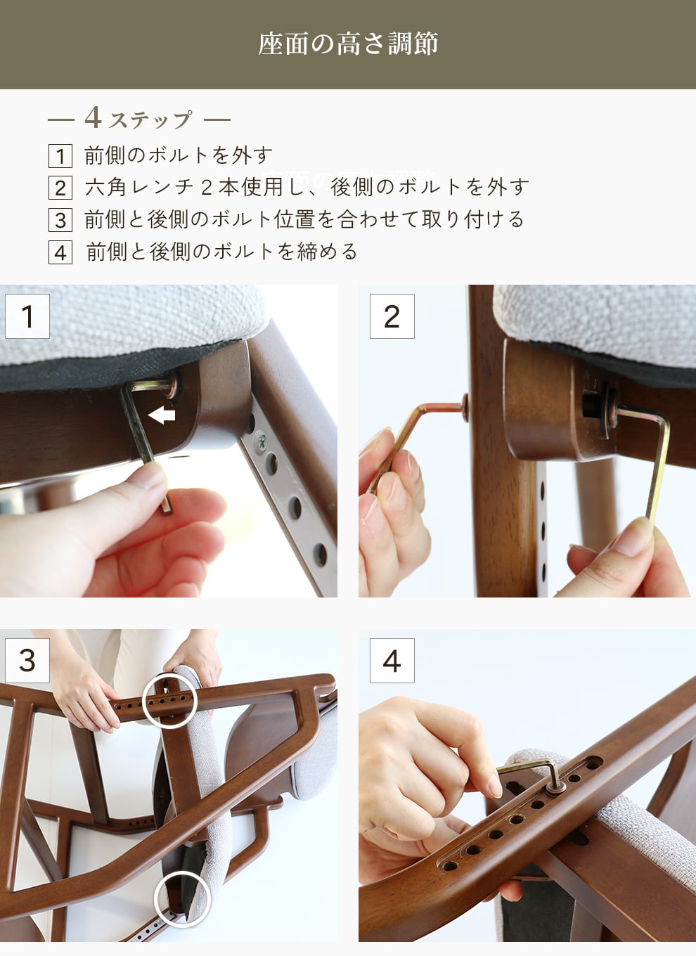 ■商品サイズ(約):幅45.5cm、奥行50cm〜奥行58cm、高さ85cm、座面高42cm〜座面高54cm