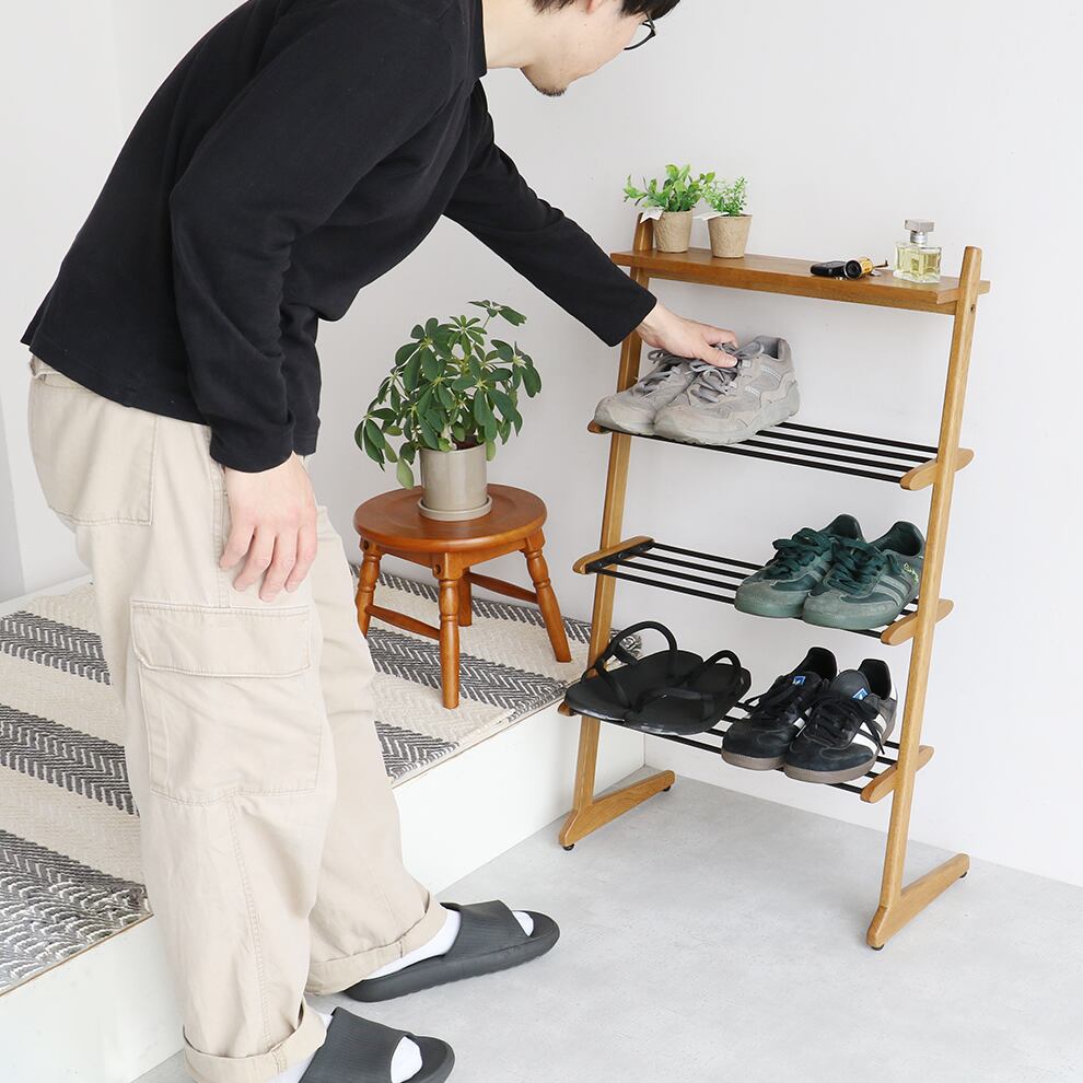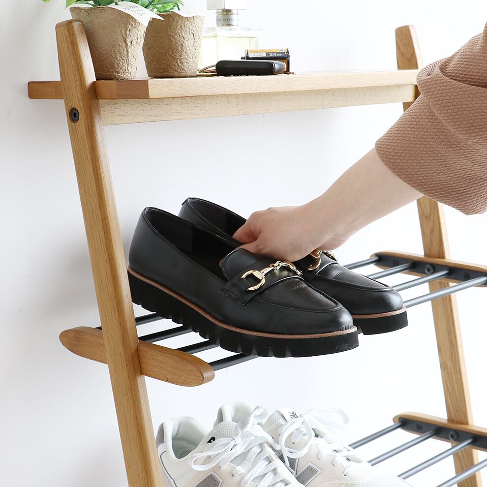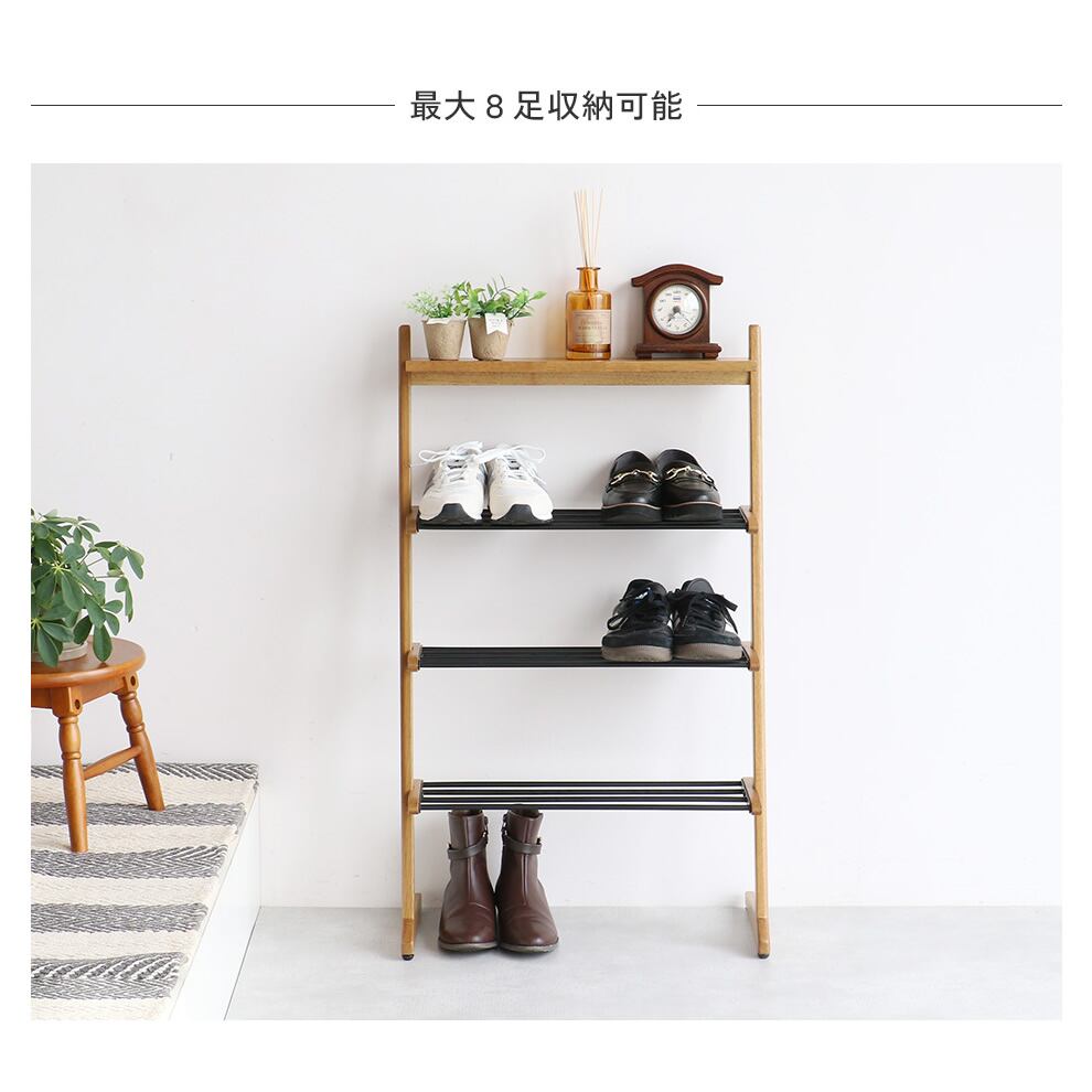 シューズラック 53.5cm幅 ナチュラル 靴収納ラック 靴ラック シューズ棚 玄関収納 玄関収納棚 靴収納棚 シューズ収納 ブーツ収納 サンダル収納 おすすめ おしゃれ 北欧 モダン スタイリッシュ 木 スチール コンパクト 省スペース スリム 玄関収納ラック