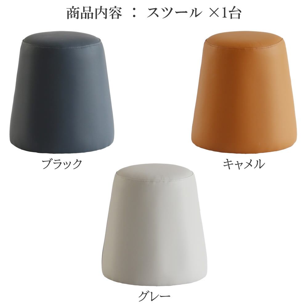 スツール 40cm幅 ブラック キャメル グレー 合成皮革 PUレザー 合皮スツール ロースツール おすすめ おしゃれ モダン シンプル ナチュラル ベーシック スタイリッシュ オットマン 足置き 腰掛け サブチェア 椅子 丸型 円型 丸形 円形 丸椅子 丸形スツール 背もたれ無し 肘掛け無し 円錐台形 円錐台型 椅子