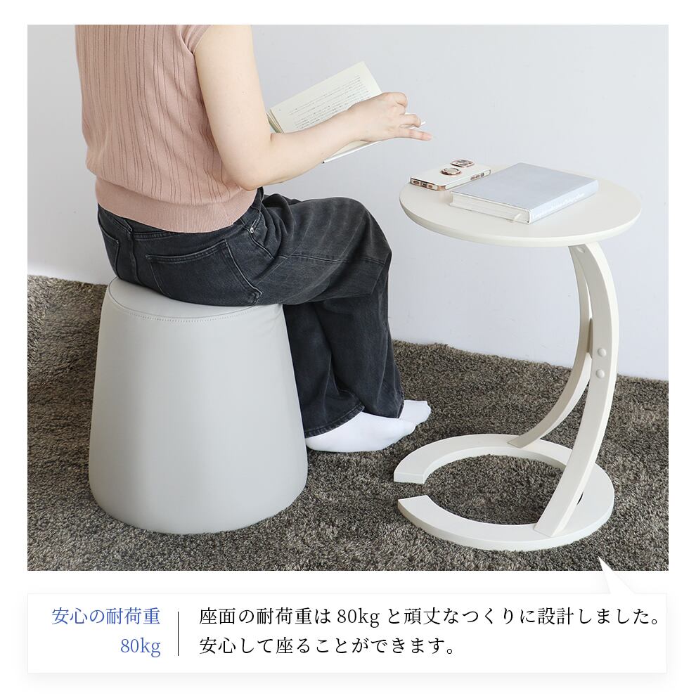 座面の耐荷重(約)80kgと頑丈なつくりに設計されており、安心して座ることができます。