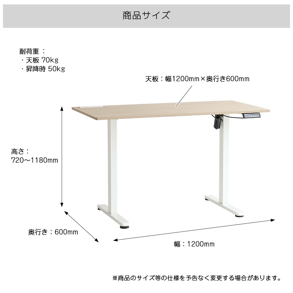■耐荷重(約):天板70kg、昇降時の天板50kg