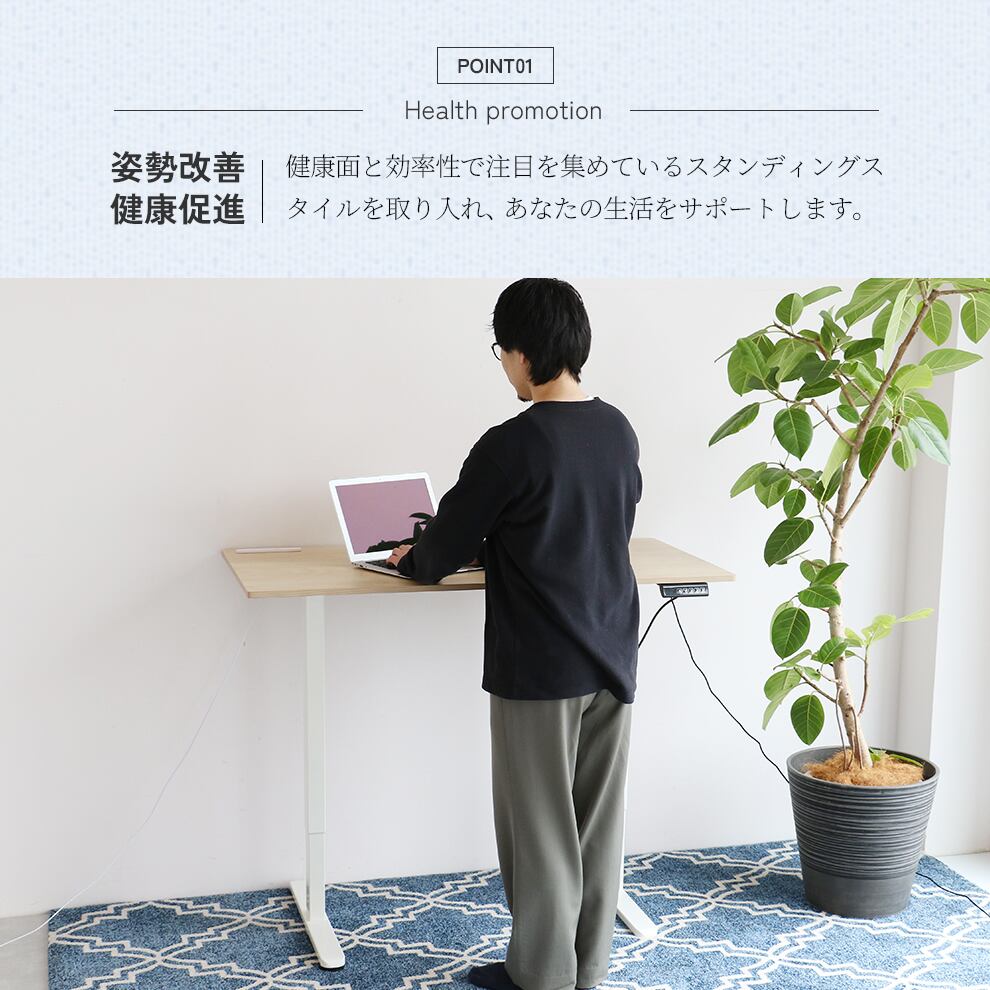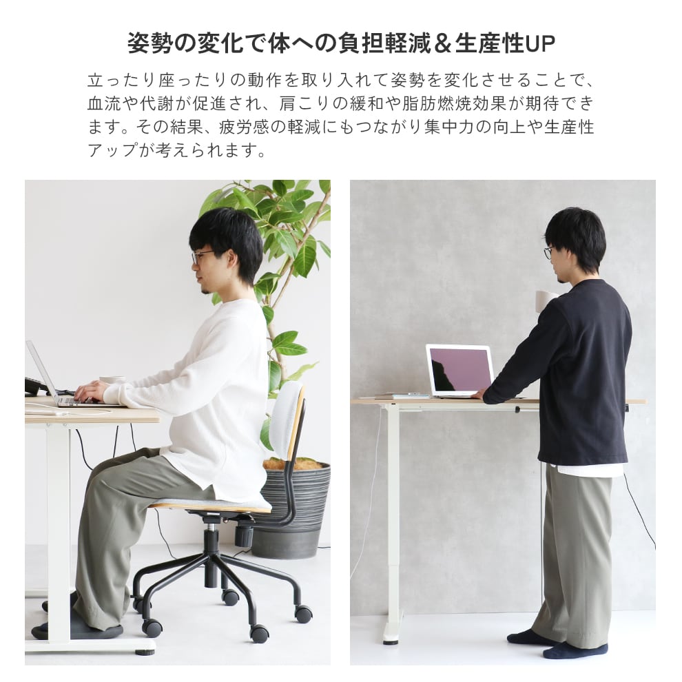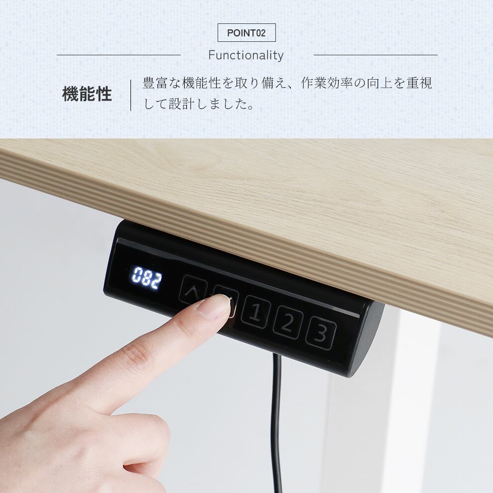 作業効率の向上を重視し、豊富な機能を備えた120cm幅の電動昇降デスクです。