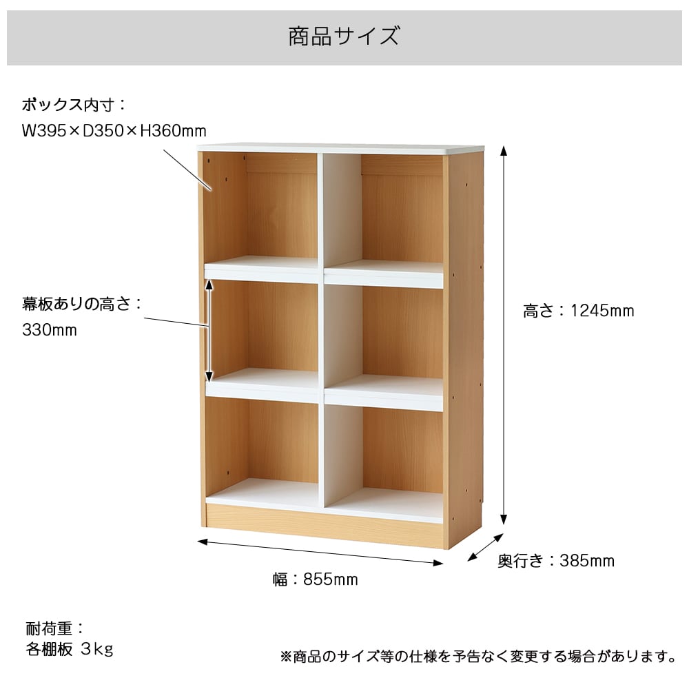 ■耐荷重(約):棚板(各)3kg