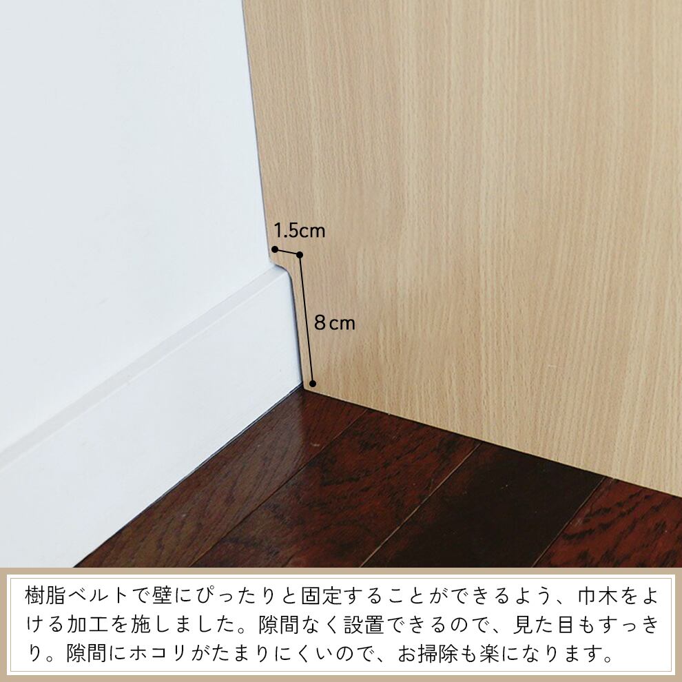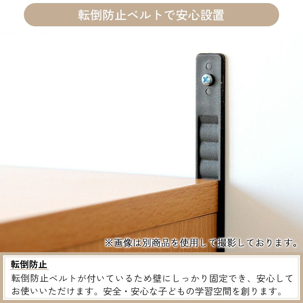 転倒防止ベルトが付属しているので、壁にしっかりと固定でき、安心してご使用いただけます。