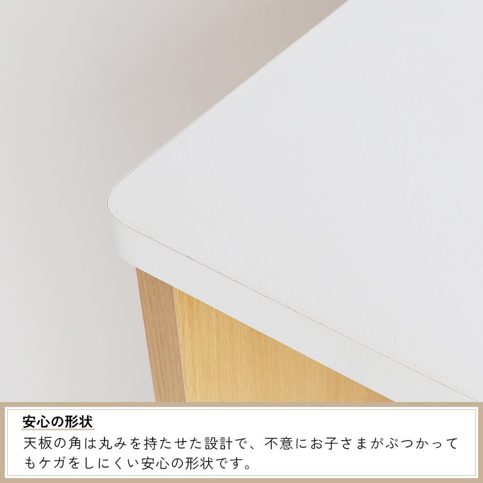 天板の角は丸みを持たせた設計で、ふいにぶつかってもケガをしにくい安心の形状です。